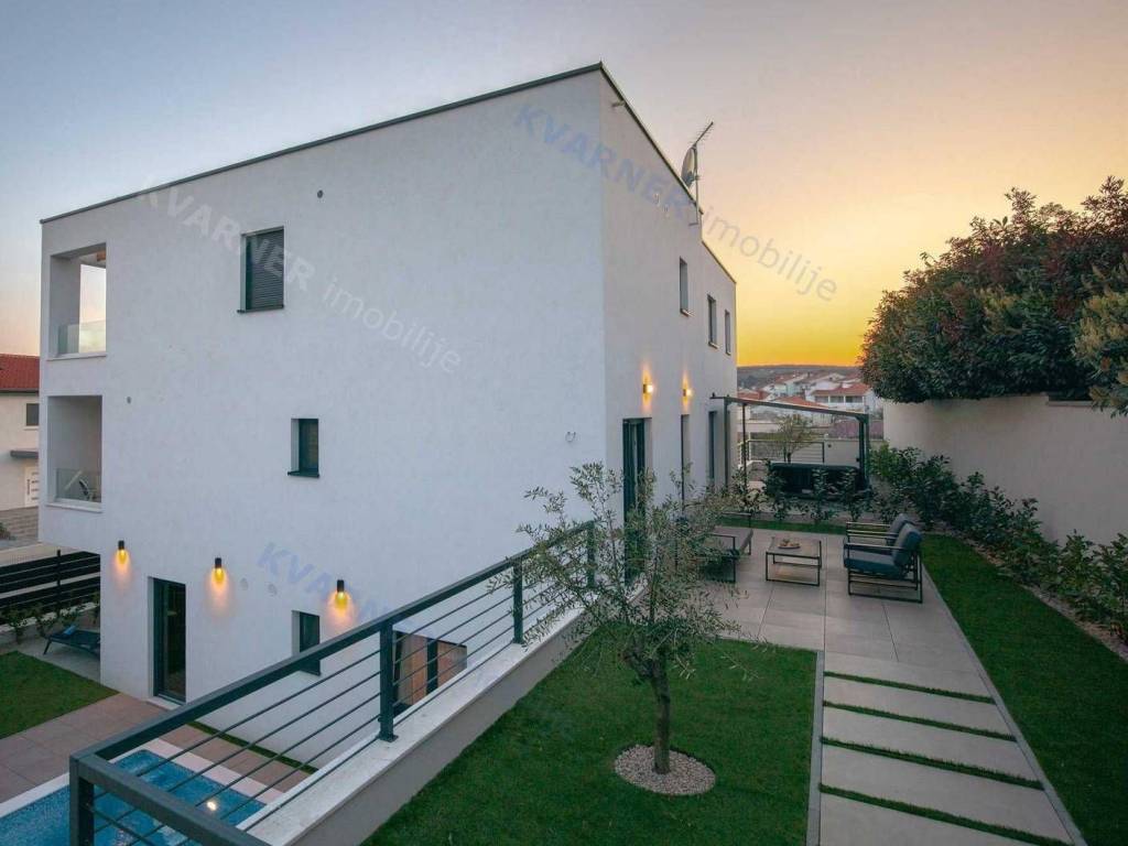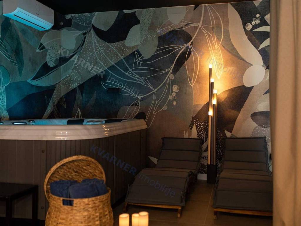 U ponudu Kvarner imobilija stigao je suvremen dvoetažni stan u gradu Krku s pogledom na more i vlastitom okućnicom s bazenom. Stan je podijeljen na dvije etaže, prizemlje i kat. Na katu se nalaze dvije spavaće sobe, kupaonica te veliki open plan living prostor s kuhinjom, blagovaonicom i dnevnim boravkom iz kojeg se izlazi na natkriveni balkon s prekrasnim pogledom na more. U prizemlju se nalazi još jedna spavaća soba s vlastitom kupaonicom, spremište te wellness prostor koji uključuje zatvoreni SPA s unutarnjim jacuzzijem i saunom te dodatnu kupaonicu. Iz wellness prostora izlazi se na zaklonjenu natkrivenu terasu s okućnicom i bazenom.