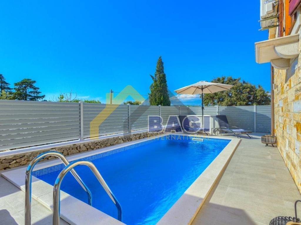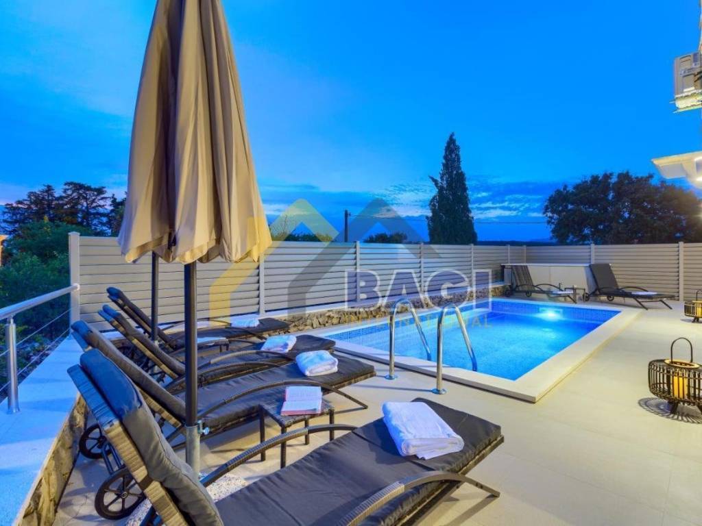 Vila je klimatizirana, a uključuje 3 spavaće sobe, 2 kupaonice i 1wc,dnevni boravak, potpuno opremljenu kuhinju s hladnjakom i vrhunskim aparatima te 2 kupaonice s tušem.