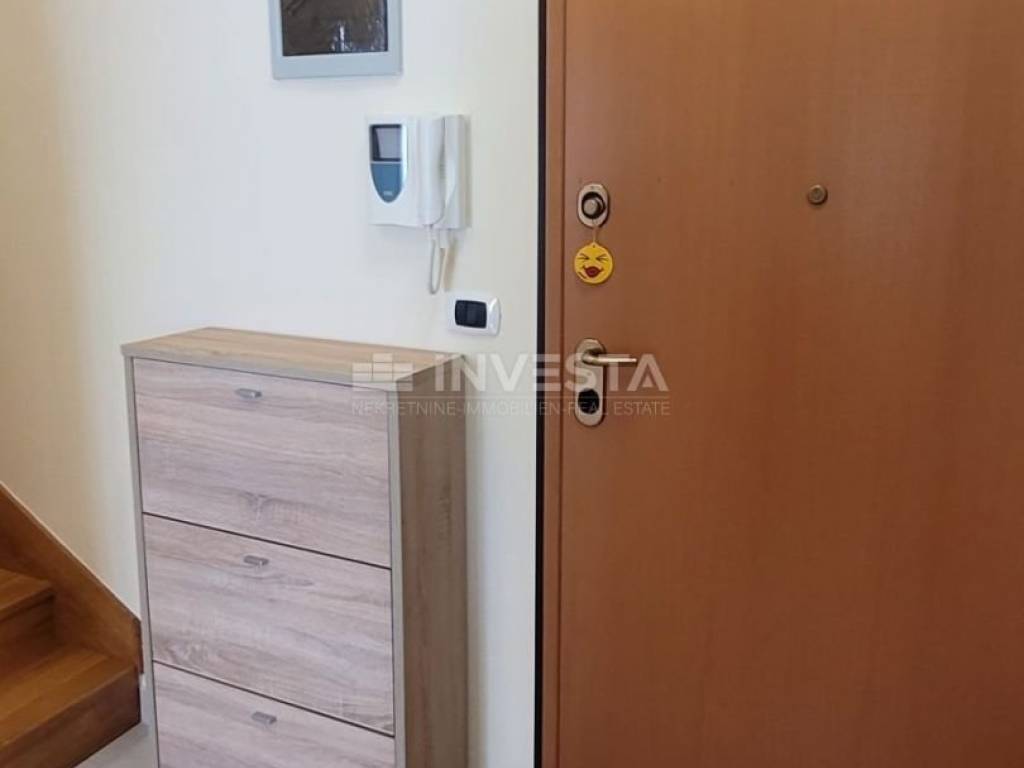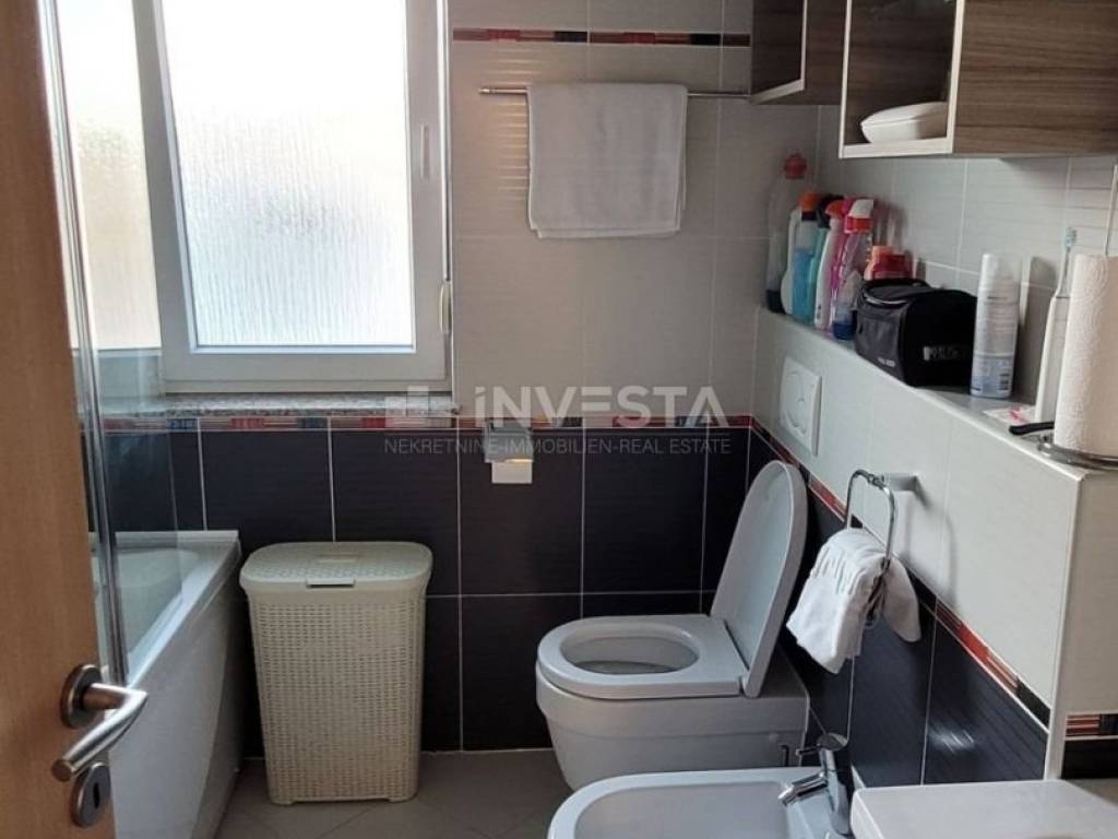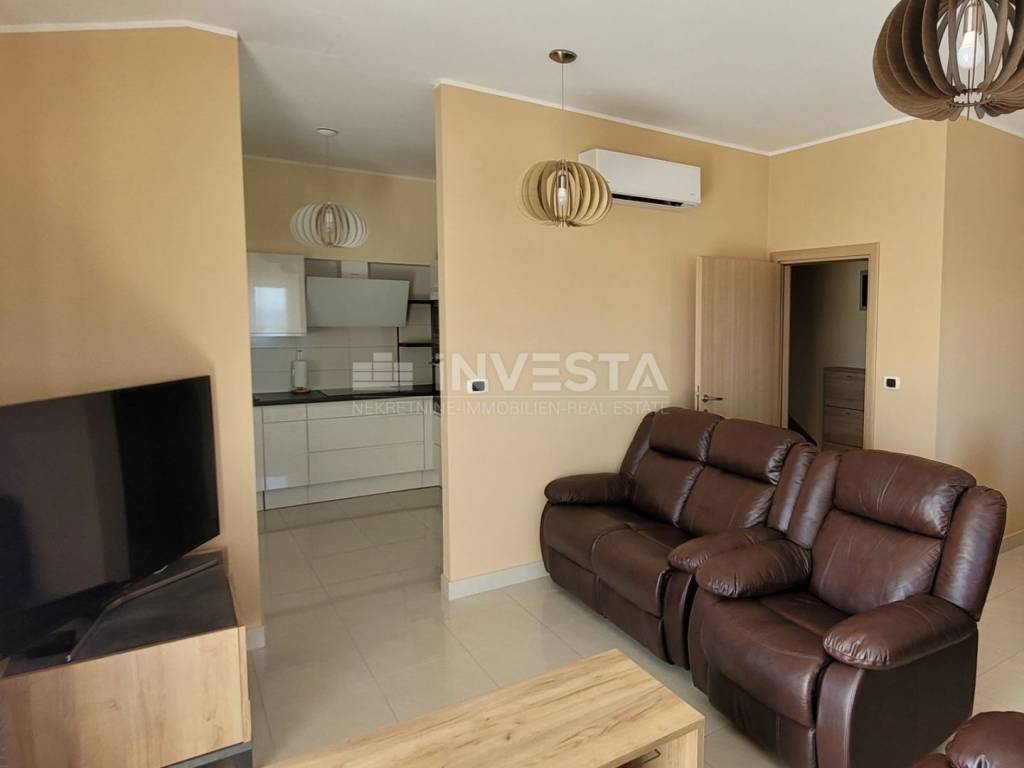 Uz stan dolaze i dva parkirna mjesta smještena unutar okućnice zgrade. More i uređene plaže udaljeni su približno 900 metara, dok su u blizini dostupni svi važni sadržaji za svakodnevni život poput škole, trgovine, restorana, ljekarne i sl. Vlasništvo je uredno, bez tereta, a kupnja je moguća putem kredita.