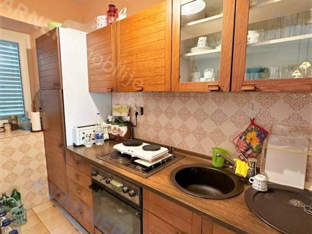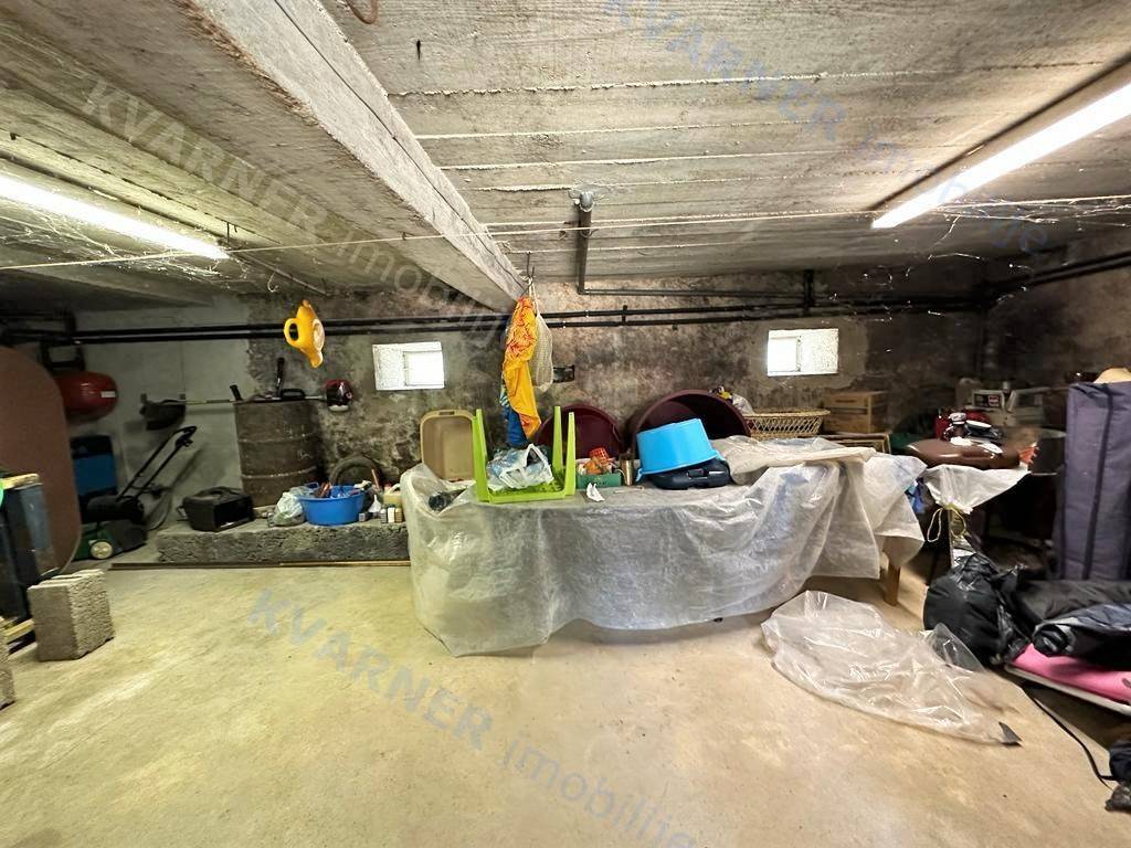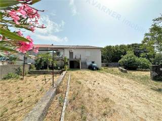Na mirnoj lokaciji okružena zelenilom, na parceli od ukupno 1.175 m2, smjestila se ova dvojna kuća sa velikom okućnicom. Kuća se sastoji od kuhinje sa blagovaonicom, dnevnim boravkom, spavaćom sobom, kupaonicom i hodnikom iz kojih se izlazi na terasu (volta). U prizemlju kuće nalazi se prostorija koja je uređena kao studio sa zasebnim ulazom. Također u prizemlju kuće nalazi se i velika konoba koja se može urediti kao prostorija za druženje. Na okućnici se nalaze još garaža, spremište i nadstrešnica koje je potrebno urediti. Nekretnina sa puno potencijala!