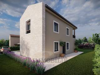 Na prodaju je moderna samostojeća kuća u izgradnji, smještena na mirnoj lokaciji u okolici Poreča, udaljena svega 13 kilometara od Poreča i mora.
