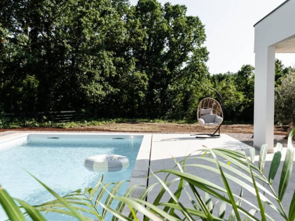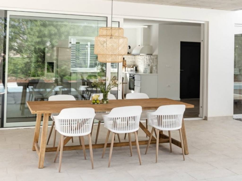 U ponudi imamo ovu lijepu novouzgrađenu prizemnicu nedaleko Labina. Kuća se satoji od open spacea -kuhinje, dnevnog boravka i blagavaone sa staklenim stjenama kroz koje se izlazi na na bazeni i ljetnu ljetnu kuhinju . Tri spavaće sobe imaju svaka svoju kupaonu a tu je i gostinjski WC. Grijanje je riješeno klima inverterima a u kupaonama imamo podno grijanje. Okućnica je lijepo uređena a za potpuni dojam tu je i bazen od 45 m2. Kuća je trenutno u funkciji najma pa novi vlasnik preuzima po želji i posao.