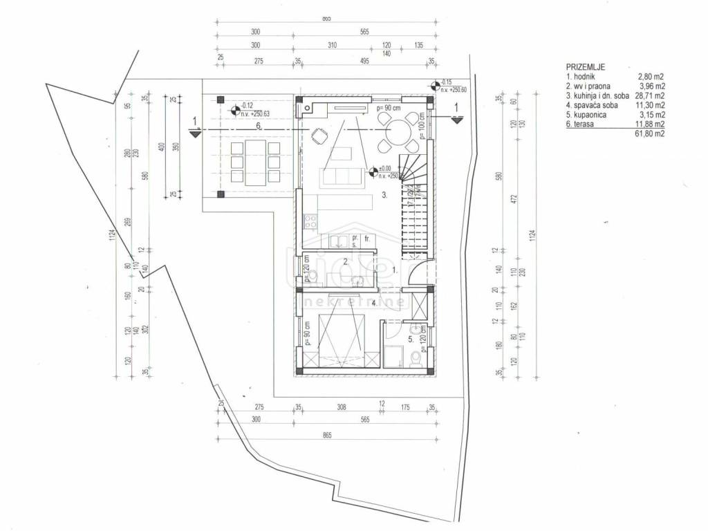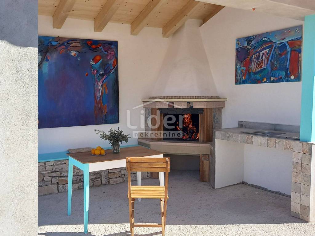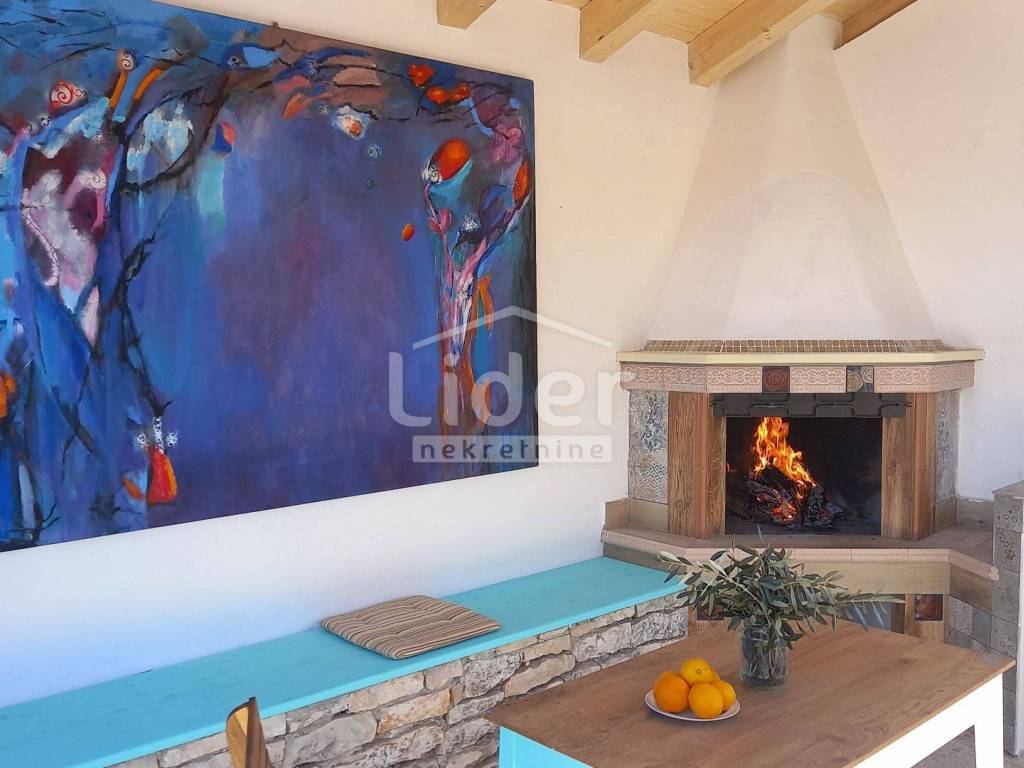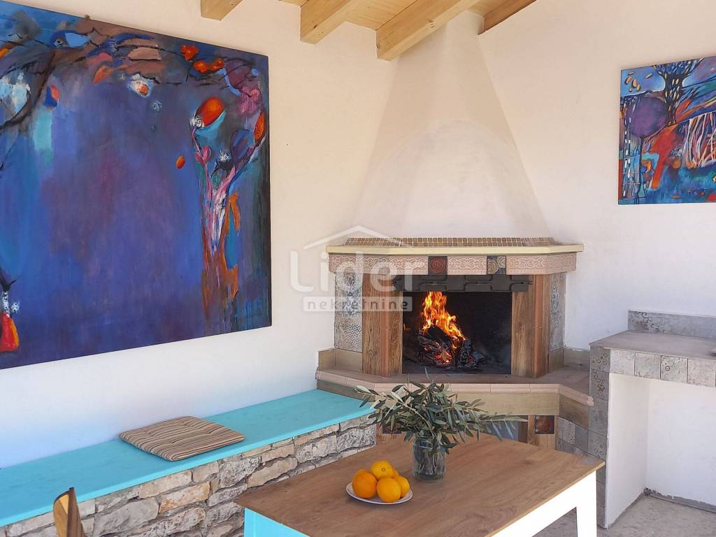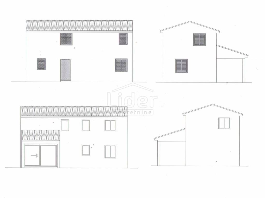 -Zemljište s izgrađenom kućom u roh-bau fazi, to jest, stavljenom kućom pod krov, ožbukanom izvana i vanjska stolarija, te iskopan bazen, septička u funkciji, vanjska kućica s kaminom kompletirana i ogradni zidovi. Cijena 250000 eura.