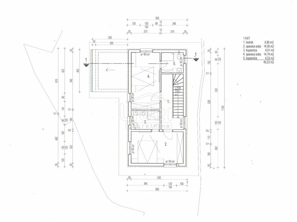 Vila će imati prizemlje i prvi kat te sunčalište i bazen od 4 x 7 m2. Kraj bazena terasa i kućica s kaminom za vanjski boravak. Vila će imati tri spavaće sobe, tri kupaone, veliki boravak s kuhinjom i blagovaonom i malim wc-om. Stepenice će biti unutar kuće.