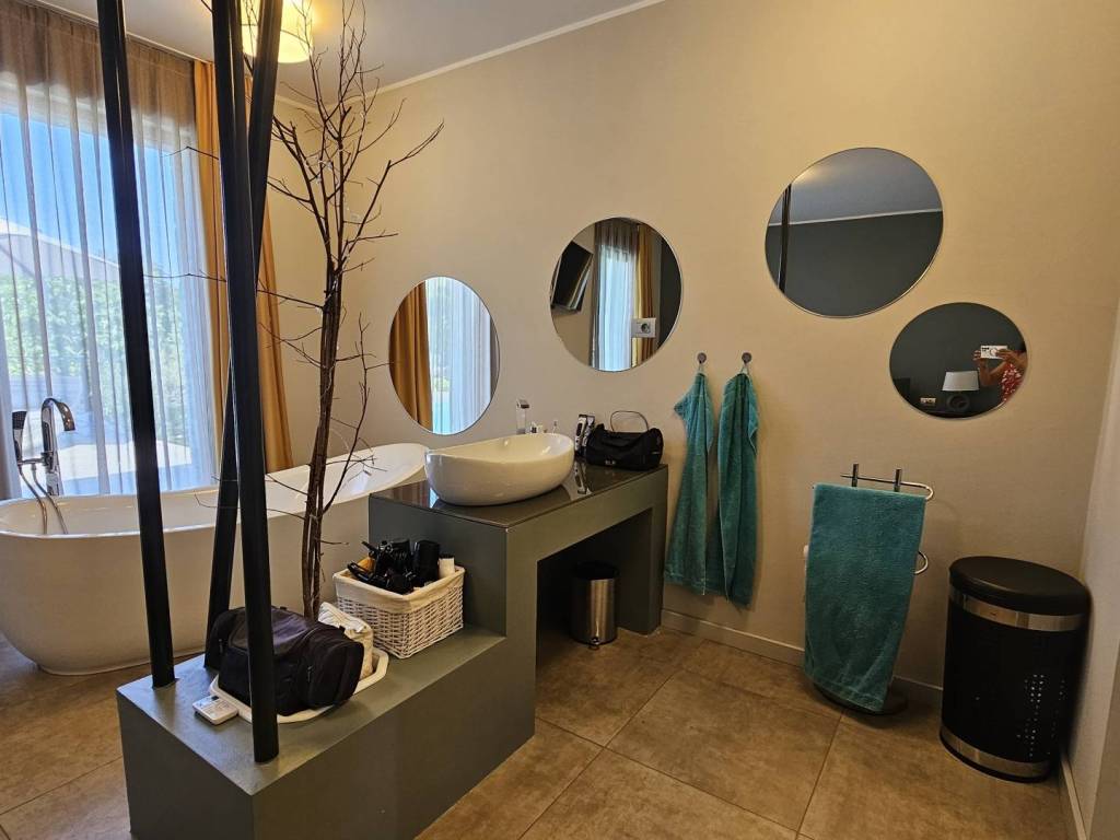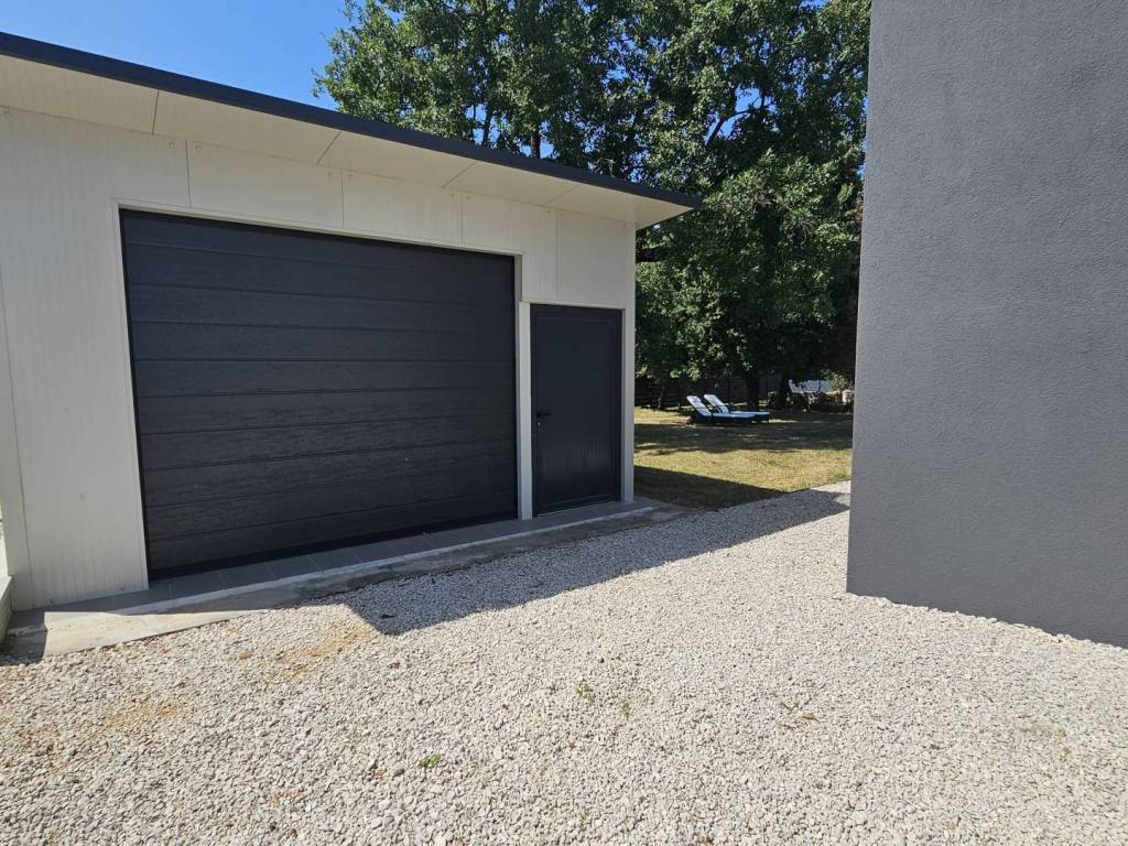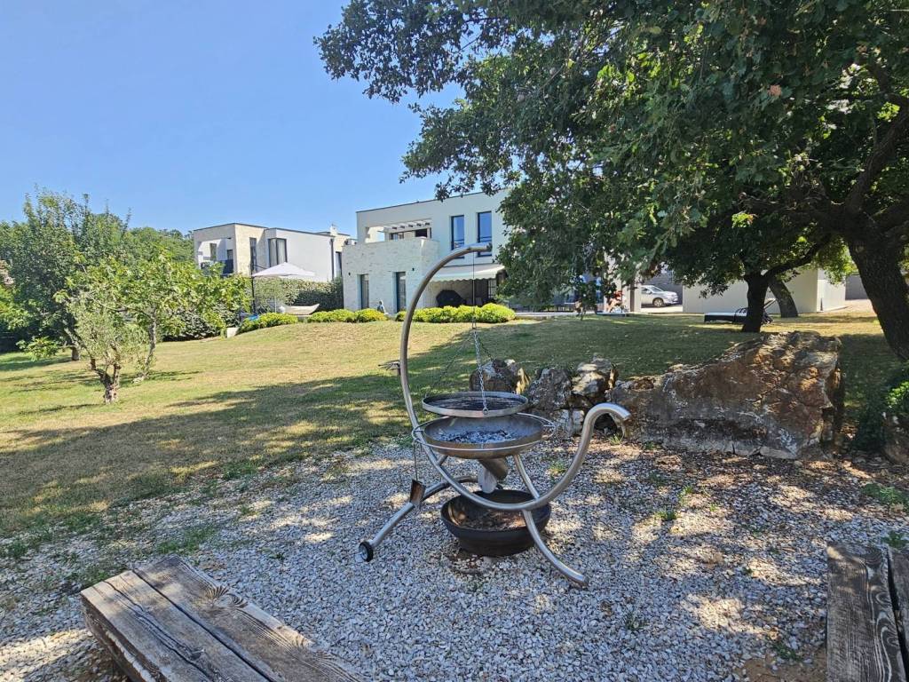 U sklopu ograđenog dvorišta nalaze se parkirna mjesta i garaža. Ostala oprema uključuje podno grijanje s dizalicom topline i solarni sustav za toplu vodu i grijanje. Vila je u potpunosti opremljena dizajnerskim namještajem i modernom tehnologijom.