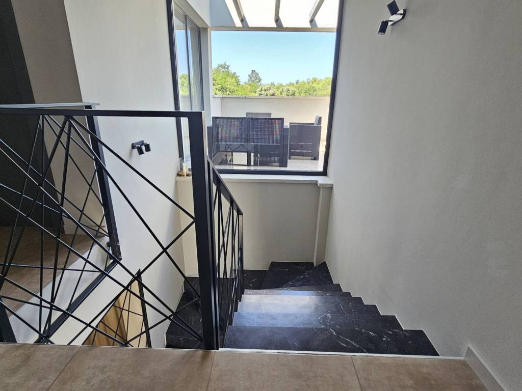 Poreč - predgrađe Poreča, samo na 2 km od mora i centra grada prodaje je vrlo kvalitetna lijepo uređena vila sa bazenom. Ukupna površina vile je 250 m2 neto na dvije etaže, bazen 50 m2, garaža 30 m2 smješteno sve na površini zemljišta od 1139 m2. Prizemlj vile sastoji se od : hodnika, wc-a , sobe sa kupaonicom , kotlovnice, velikog dnevnog boravka sa kuhinjom i blagovaonicom u otvorenom prostoru sa direktnim izlazom na terasu sa vanjskom kuhinjom , roštiljom sunčalištem i bazenom od 50 m2. Na katu vile imamo još tri prostrane spavaće sobe svaka sa svojom kupaonicom i lijepom velikom terasom za opuštanje.