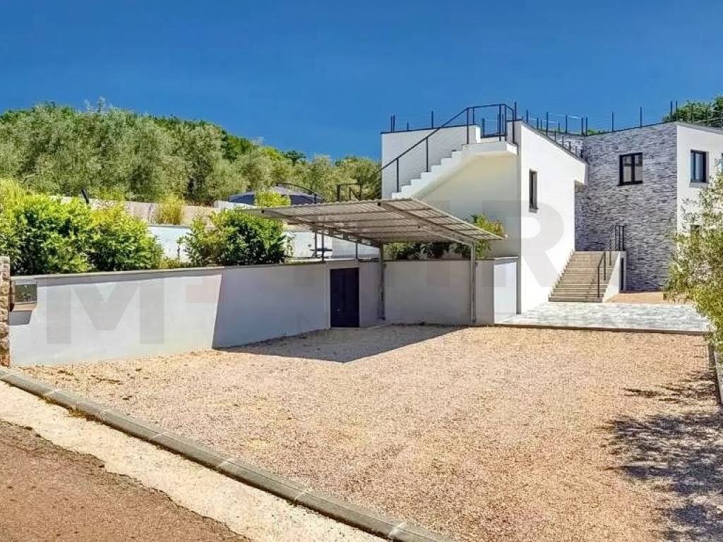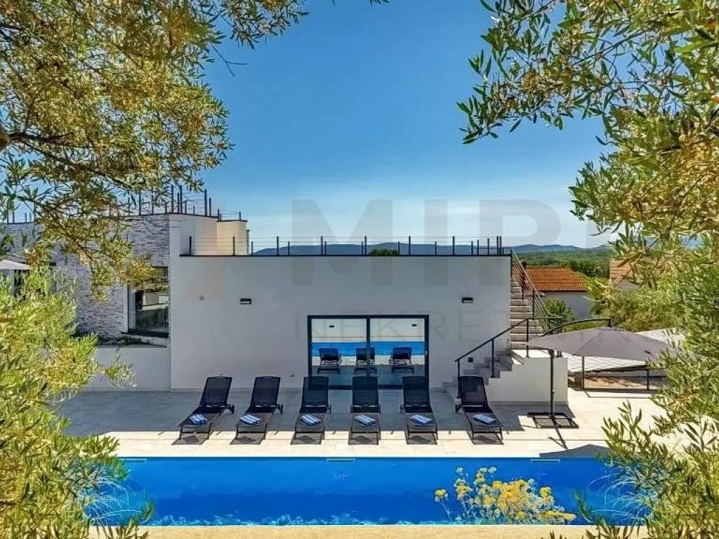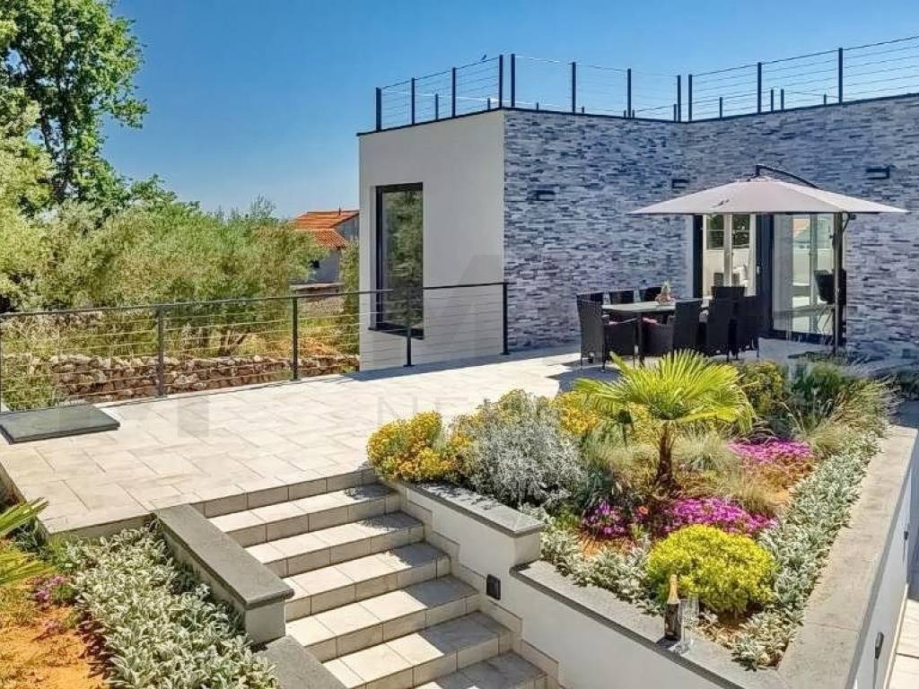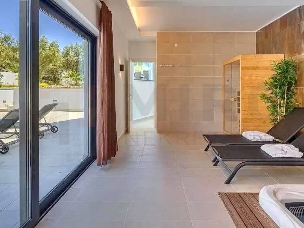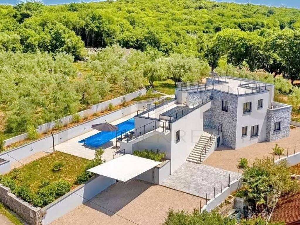 Otok Krk, šira okolica grada Krka, u ponudi agencije je jedinstvena vila na izvrsnoj mikrolokaciji u mirnom dijelu otoka, a opet blizu svih sadržaja. Vila je smještena na parceli od 1150 m2 te se sastoji od prizemlja, međuetaže i kata. Prizemlje se sastoji od 3 sobe, dvije kupaone, strojarnice, podruma i skladišnih prostora. Na međuetaži smješten je wellness s kupaonom. Wellness ima izlaz na veliku terasu sa sunčalištem i bazenom. Na katu se nalazi kuhinja s blagovaonom, mali sanitarni čvor, dnevni boravak, djelomično natkrivena terasa te izlaz na veliku terasu koja gleda na bazen. Ravni krov je uređen sa keramikom i ogradama te se može koristit kao terasa. S krovne terase pruža se prekrasan pogled na Kvarnerski zaljev. Kući pripada bazen veličine 12x3 metra s dva ležaja i ugrađenom instalacijom za hidromasažu i slap. Kuća se nalazi na jako lijepoj lokaciji, u mirnom predjelu, okružena zelenilom i maslinicima te ima pogled na more. Udaljena je 4 km od mora. Nekretninu karakterizira odličan raspored prostorija, vrhunska oprema, visokokvalitetna keramika i podne obloge. Na prostranoj opkućnici ima dovoljno mjesta za parkirati više vozila, neka su i natkrivena. Nekretnina je u vlasništvu fizičke osobe. Prodavatelj garantira uredne dokumente i brz prijenos vlasništva. Posjetite nas i pronađite kvadrat vašeg doma!