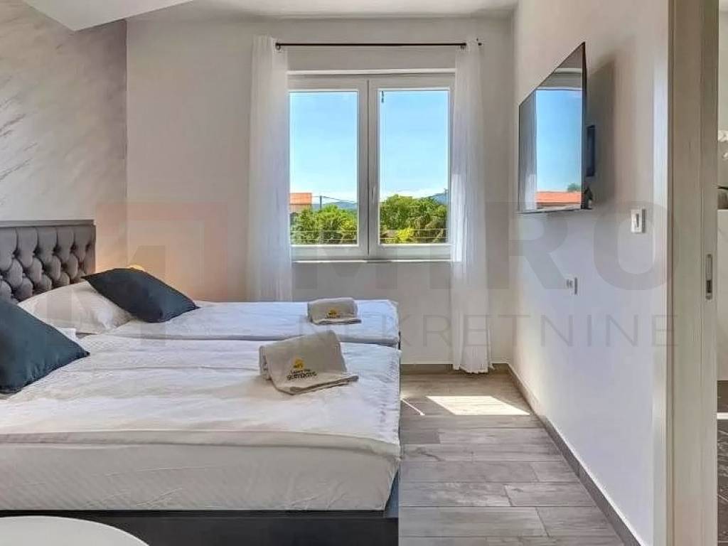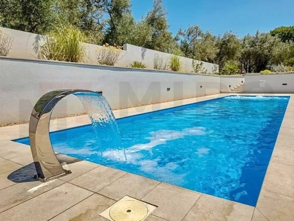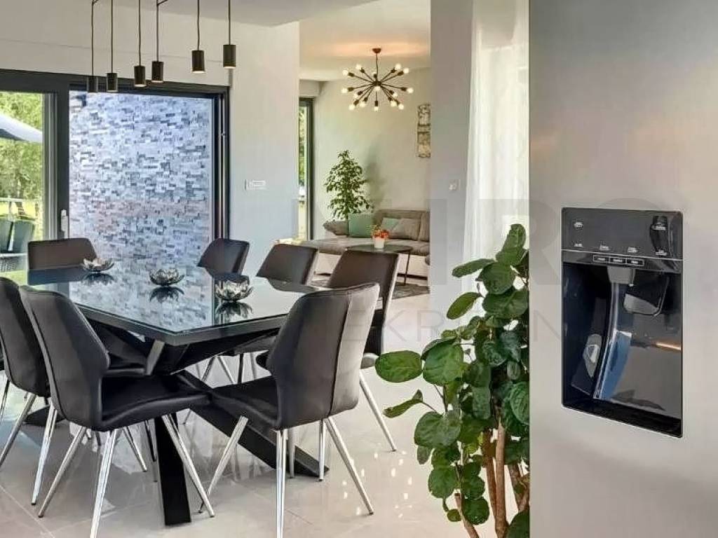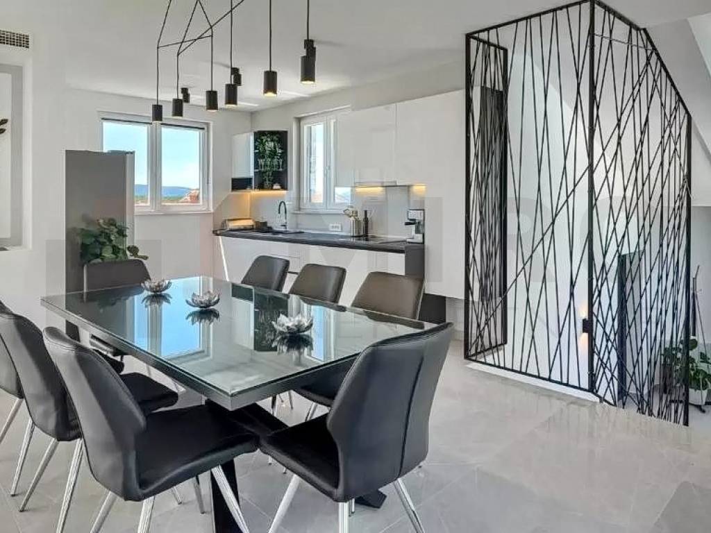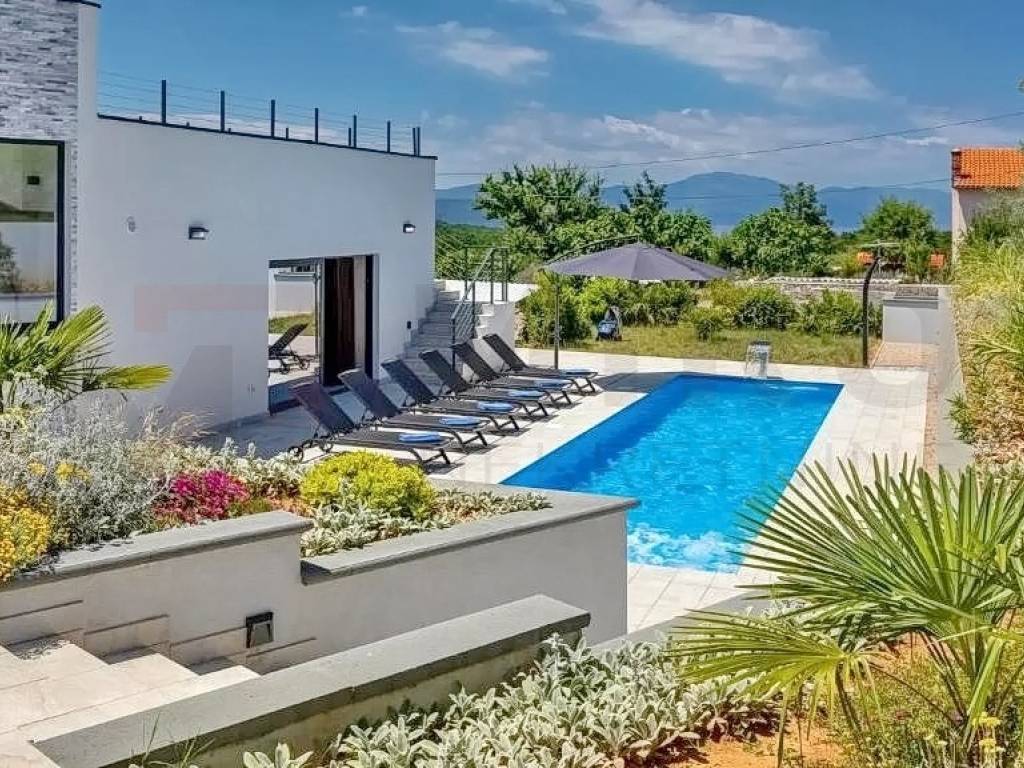 Otok Krk, šira okolica grada Krka, u ponudi agencije je jedinstvena vila na izvrsnoj mikrolokaciji u mirnom dijelu otoka, a opet blizu svih sadržaja. Vila je smještena na parceli od 1150 m2 te se sastoji od prizemlja, međuetaže i kata. Prizemlje se sastoji od 3 sobe, dvije kupaone, strojarnice, podruma i skladišnih prostora. Na međuetaži smješten je wellness s kupaonom. Wellness ima izlaz na veliku terasu sa sunčalištem i bazenom. Na katu se nalazi kuhinja s blagovaonom, mali sanitarni čvor, dnevni boravak, djelomično natkrivena terasa te izlaz na veliku terasu koja gleda na bazen. Ravni krov je uređen sa keramikom i ogradama te se može koristit kao terasa. S krovne terase pruža se prekrasan pogled na Kvarnerski zaljev. Kući pripada bazen veličine 12x3 metra s dva ležaja i ugrađenom instalacijom za hidromasažu i slap. Kuća se nalazi na jako lijepoj lokaciji, u mirnom predjelu, okružena zelenilom i maslinicima te ima pogled na more. Udaljena je 4 km od mora. Nekretninu karakterizira odličan raspored prostorija, vrhunska oprema, visokokvalitetna keramika i podne obloge. Na prostranoj opkućnici ima dovoljno mjesta za parkirati više vozila, neka su i natkrivena. Nekretnina je u vlasništvu fizičke osobe. Prodavatelj garantira uredne dokumente i brz prijenos vlasništva. Posjetite nas i pronađite kvadrat vašeg doma!
