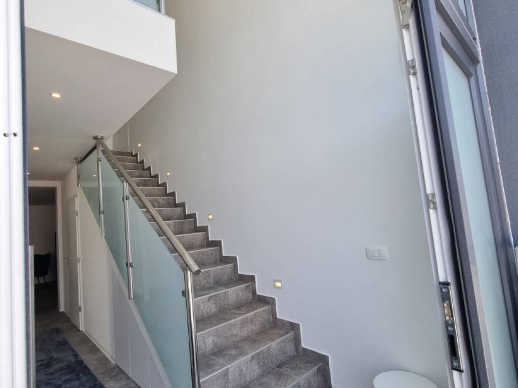 U prizemlju nalazi se hodnik, kupatilo, strojarnica, open space kuhinja i dnevni boravak, iz kojeg se izlazi na natkrivenu terasu sa pogledom na more.