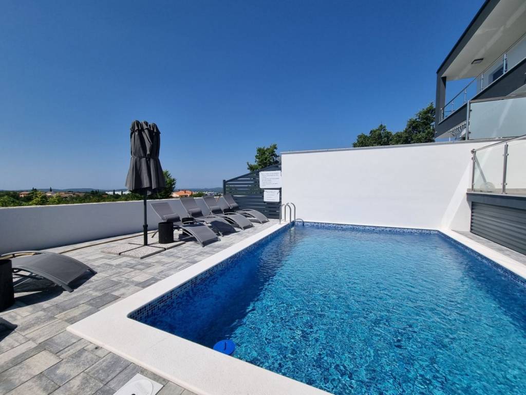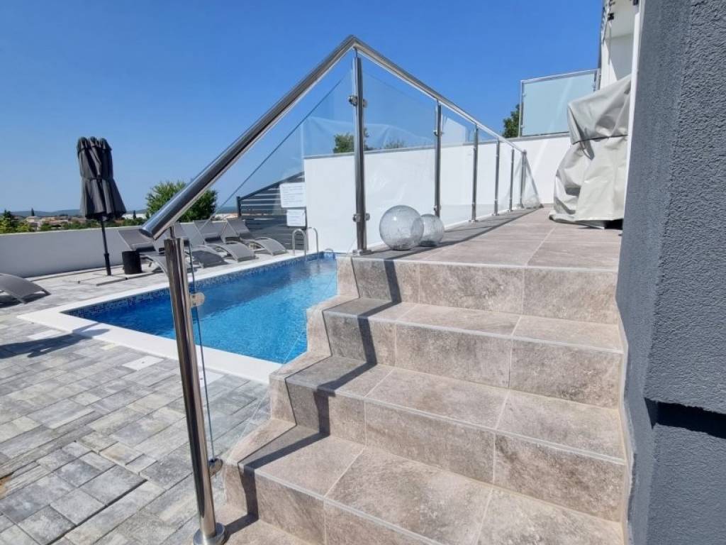 Komforan bazen, sa vanjskim tušem i grilom smješteni su na južnoj strani.