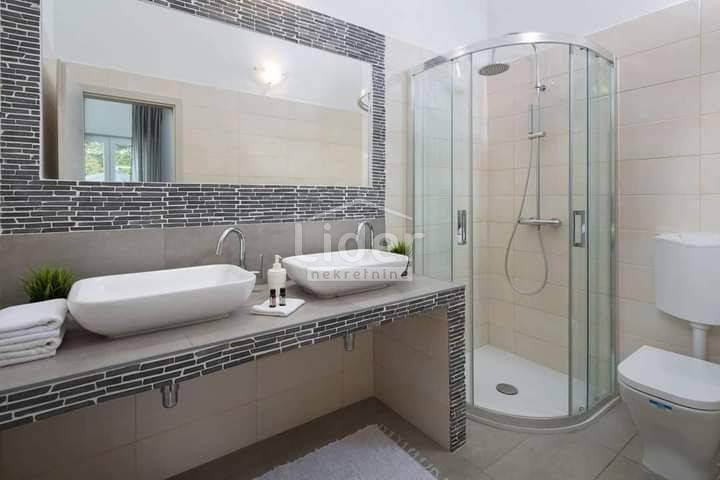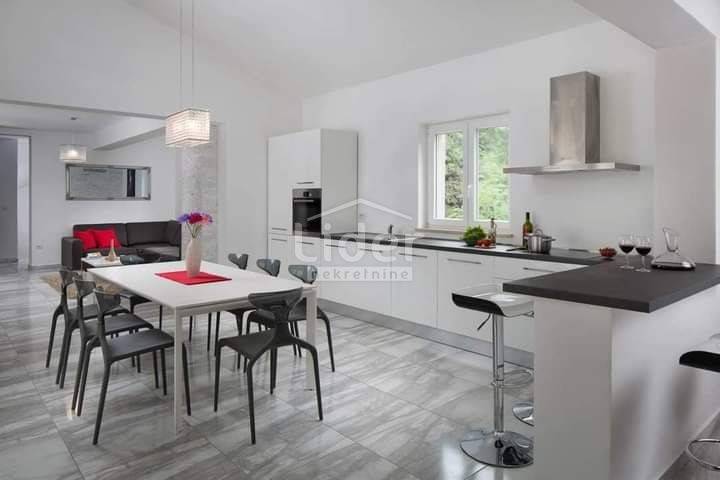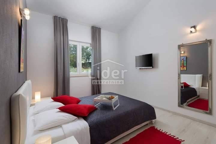U okolici Labina (9km) na prodaju je stilski uređena vila koja već godinama uspješno radi u turizmu. Stambena površina iznosi 278 m2 i proteže se na tri etaže; suteren, prizemlje i kat. Suteren se sastoji od SPA I wellness prostora u kojem se nalaze sauna, jacuzzi, wc, tuš i mini teretana. Prizemljem dominira otvoreni prostor u kojem su smješteni kuhinja, dnevni boravak i kutak za biljar. Na istoj etaži nalaze se dvije spavaće sobe s vlastitim kupaonicama, ostava i gostinjski toalet. Na katu se nalaze dvije spavaće sobe, svaka sa vlastitom kupaonicom i izlazom na terasu. Grijanje nekretnine je centralno na pelete i moguće je upravljanje putem mobilnog uređaja. Za vodu je ugrađen bojler od 400 litara koji se grije na pelete i napravljena je prva faza solarnog panela koji bi trebao po završetku biti dostatan za toplu vodu. Cijela kuća je ozvučena Bose ozvučenjem koji radi na daljinski. Njegovana okućnica od 2000 m2, ograđena je i opremljena sustavom automatskog navodnjavanja. Bazen sa slanom vodom površine 42 m2 opremljen je toplinskom dizalicom za grijanje i hlađenje vode kojom se također može upravljati putem mobilnog uređaja. Uz bazen se nalazi dječje igralište i grill zona s otvorenim kaminom. Vila je namještena u potpunosti i kao takva se prodaje. Zainteresiranim kupcima se na uvid može dostaviti godišnji prihod nekretnine. ..