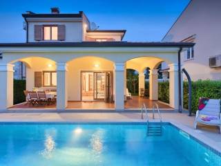 Na prodaju je šarmantna vila skrivena u malom mjestašcu koje je u neposrednoj blizini Poreča. Ukupna površina vile iznosi 130m2. Površina okućnice je 500 m2. Ova prekrasna vila sastoji se od 3 spavaće sobe od kojih dvije spavaće sobe imaju brače krevete a jedna od njih krevet za jednu osobu , osvjetljene i ugodne dnevne sobe i blagovaonice te u potpunosti opremljene kuhinje. Iz jedne spavaće sobe pruža se predivni panoramski pogled na more uz koji ćete uživati svako jutro. Vila je opremljena s dvije kupaonice od čega se u jednoj nalazi kada a u drugoj tuš kabina. Iz dnevne sobe izlazi se na predivnu terasu s privatnim bazenom. U dvorištu se nalazi roštilj na plin i stol, ako se osjećate inspirirani pripremiti neke od slasnih jela. Grijanje u vili je centralno + klima uređaji. Cijena 590.000 €