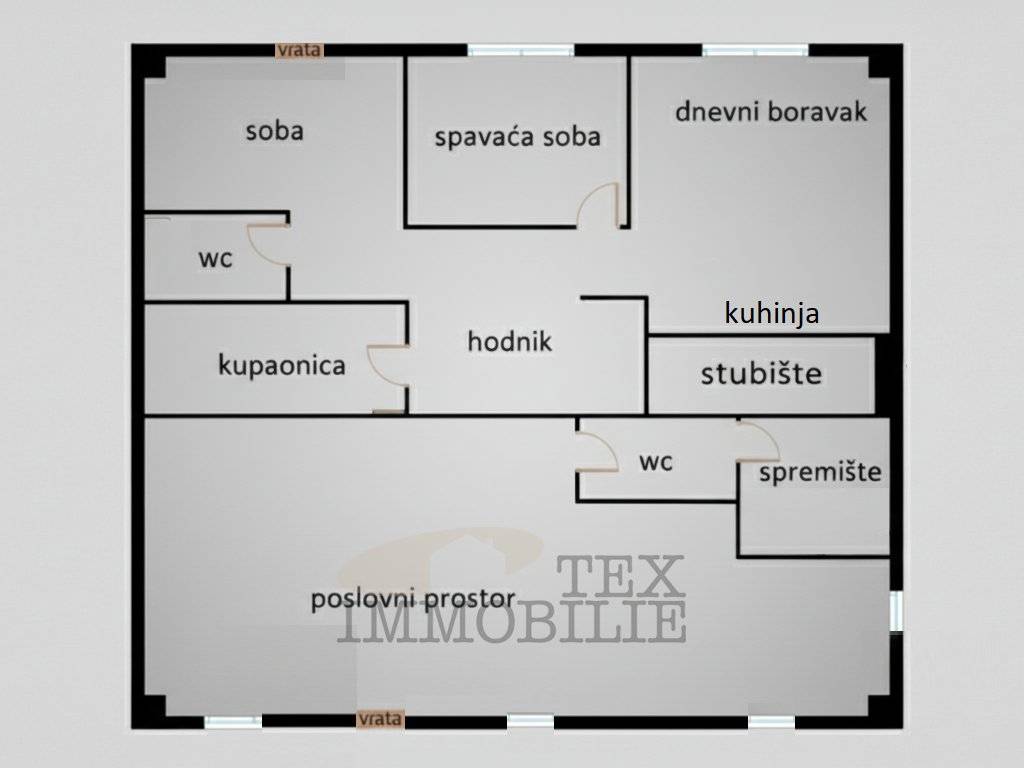 Poslovni prostor 1 – površine oko 55 m², visina stropa 3 m, dva ulaza.