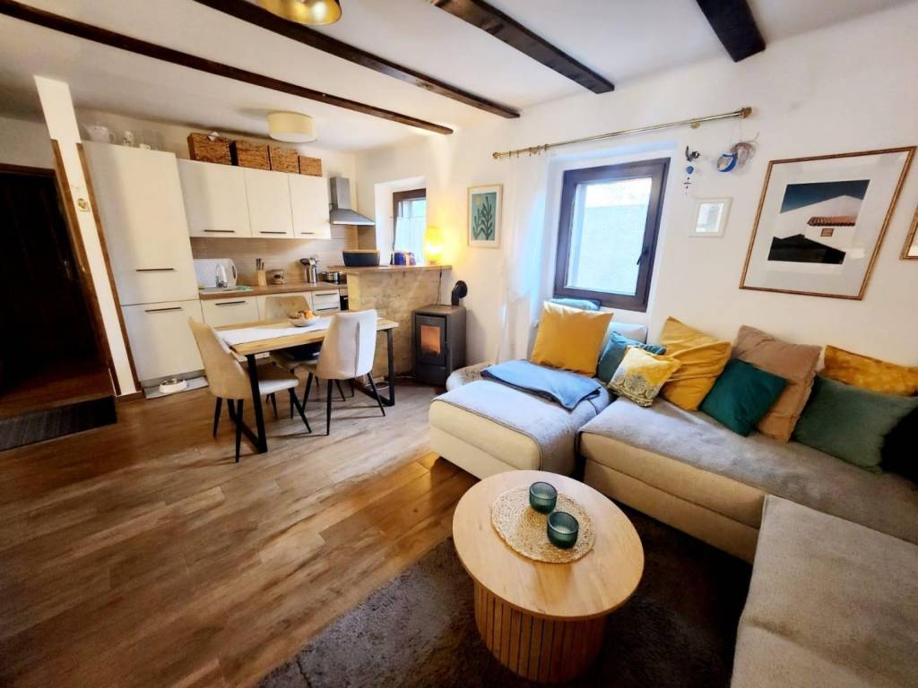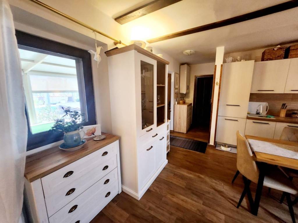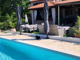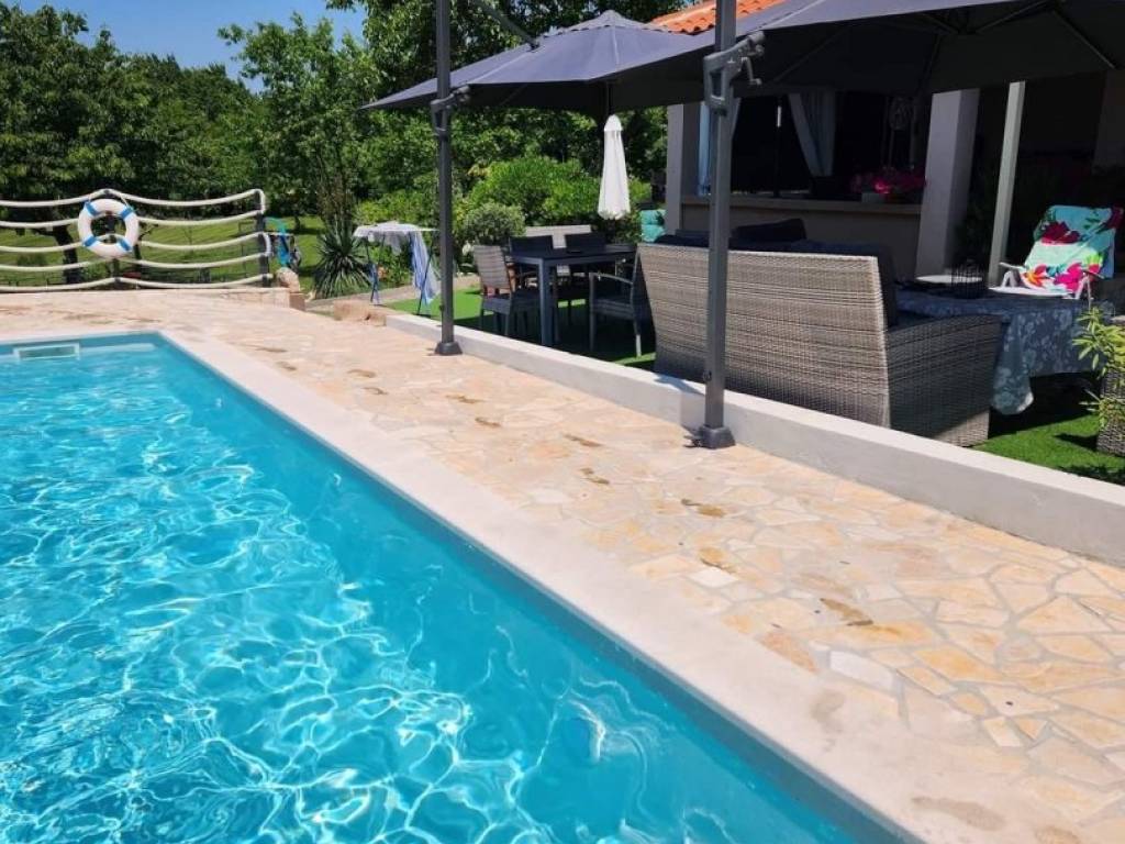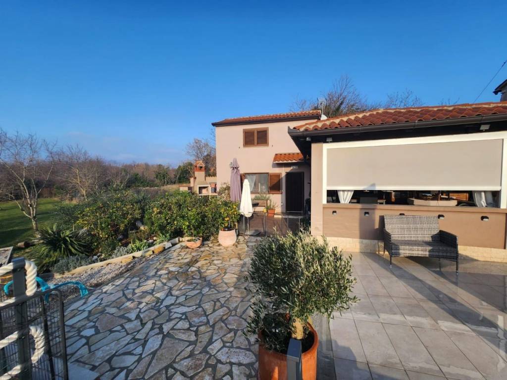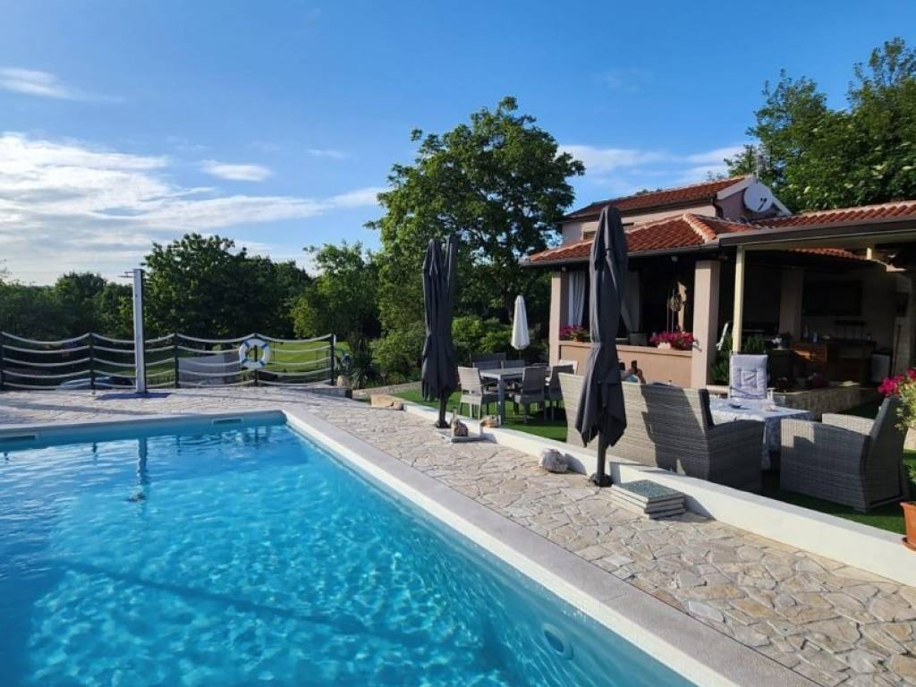 U okolici Labina u ponudi imamo kuću s 2 stambene jedinice površine 96 m2. Prva stambena jedinica sastoji se od kuhinje s blagovaonicom i dnevnim boravkom, 1 spavaće sobe i kupaonice. Druga stambena jedinica sastoji se od dnevnog dijela i kupaonice te spavaće sobe u potkrovlju. Ispred kuće nalazi se natkrivena terasa s cisternom te ljetnom kuhinjom s roštiljem i jacuzzi. Kući pripada prostrana okućnica površine 2263 m2. Na njoj je smješten bazen dimenzija 8x4 m, sunčalište, više natkrivenih parkirnih mjesta te njegovan vrt. Okućnica je u potpunosti ograđena i okružena je poljoprivrednim površinama te jamči privatnost budućem vlasniku. Obzirom na veliku površinu, od čega je većina u građevinskoj zoni, postoji mogućnost gradnje dodatnih objekta. Nekretnina može biti investicija za najam, ali i za život na mirnoj lokaciji, a opet u blizini svih sadržaja.