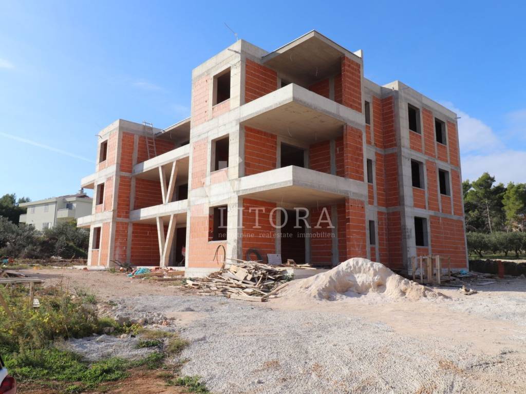 Vodice – novogradnja, 1-soban apartman ukupne korisne površine 58,75 m2, smješten u prizemlju stambene zgrade. Orijentiran je na istočnu stranu a sastoji se od hodnika, spavaće sobe, kupaonice, dnevnog boravka s blagovaonicom i kuhinjom, s izlazom na natkrivenu terasu površine 10,99 m² i vrt površine 50,92 m2. Opremljen je protuprovalnim vratima, klima-uređajima u svakoj prostoriji, električnim podizačima roleta, podnim grijanjem u kupaonicama i dnevnom boravku. Apartmanu pripada jedno vanjsko parkirno mjesto. Udaljen je 1.300 m od plaže i 1.000 m od centra grada.
