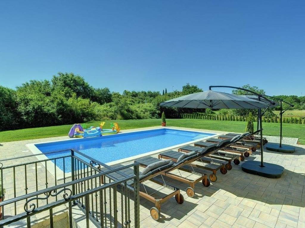 Na prodaju je ova predivna villa sa bazenom okružena predivnom prirodom u okolici Rovinja. Imanje je okruženo velikom zelenom okućnicom ukupne kvadrature 2500 m2 koji se savršeno uklapa u ljepotu krajolika. U prizemlju ville imamo veliki otvoreni dnevni boravak, blagovaonicu i kuhinju. Ovaj dnevni boravak se odlično usklađuje s vanjskim prostorom zahvaljujući izlazom na natkrivenu terasu i tako vam omogućuje uživanje u bazenu i uređenom vrtu s opuštajućim pogledom na prirodu. Na ovoj etaži se također nalazi i spavaća soba s vlastitom kupaonicom, gostinjski wc i ostava. Stepenice vode na 1. kat, gdje se nalaze još tri spavaće sobe svaka sa svojom kupaonicom. U podrumu se nalazi konoba s ognjištem, praonica, velika prostorija za druženje koju možete preoblikovati prema vlastitim idejama i uz to, tu se još nalazi jedna velika kuponica. Velika prednost je garaža unutar kuće kapaciteta za dva vozila te povezanost s kućom u cjelini. Ova predivna villa se prodaje namještena i spremna za preuzimanje već uhodanog posla najma. Više na upit.