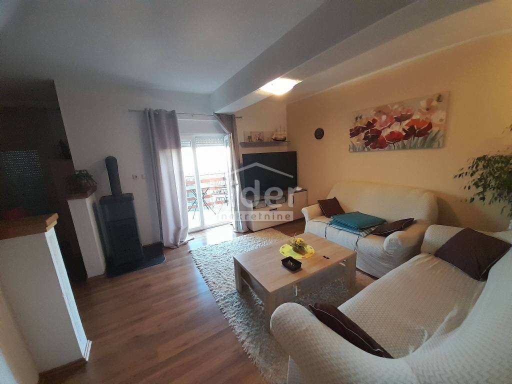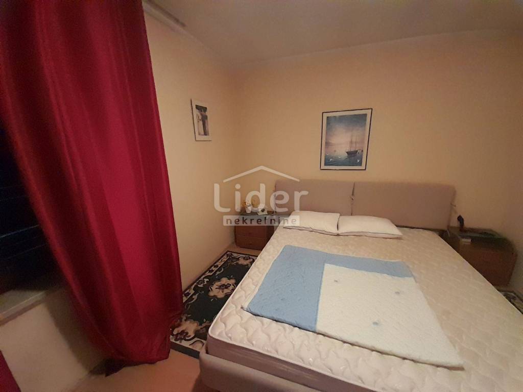 Vanjskim stepenicama ide se na kat u drugi stan koji također ima zatvoreni pred prostor, hodnik, kupatilo, manju sobicu, dvije spavaće sobe ,kuhinju s blagovaonicom i dnevni boravak s balkonom kroz cijelu dužinu stana i predivnim pogledom na more.
