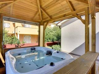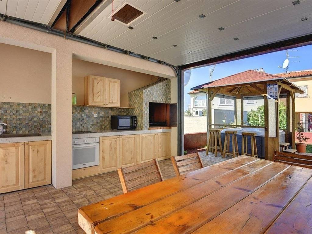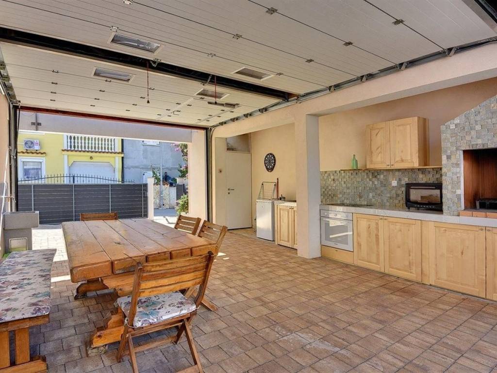 Na prodaju je ova lijepa prizemnica površine 120 m2 sa galerijom. Sastoji se od dvije spavaće sobe, wc, dnevnog boravka sa kuhinjom i galerije. Na okućnici napravljena je prostrana ljetna kuhinja sa kaminom, pećnicom i svim potrebnim aparatima...idealna za obiteljska druženja. U dvorištu se također nalazi vanjski jacuzzi za dodatno uživanje. Kuća posjeduje svoju garažu i više parkirnih mjesta. Nekretnina je odlična investicija! Više na upit.