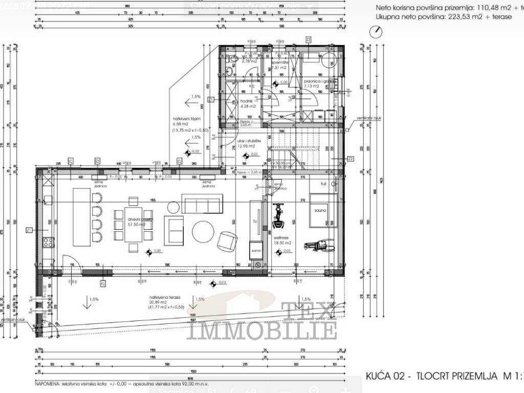 - Podno grijanje toplinska pumpa - Klima uređaji u svakoj sobi - Fitness soba sa sunom - Stolarija aluminijska antrocit boje, troslojno staklo - Cigla 25cm+10cm toplinska izolacija - Pogled more - Alarm i video nadzor 1 faza