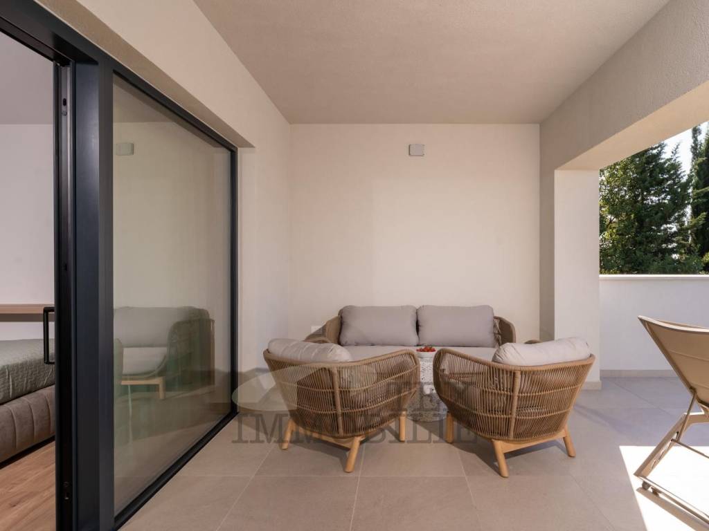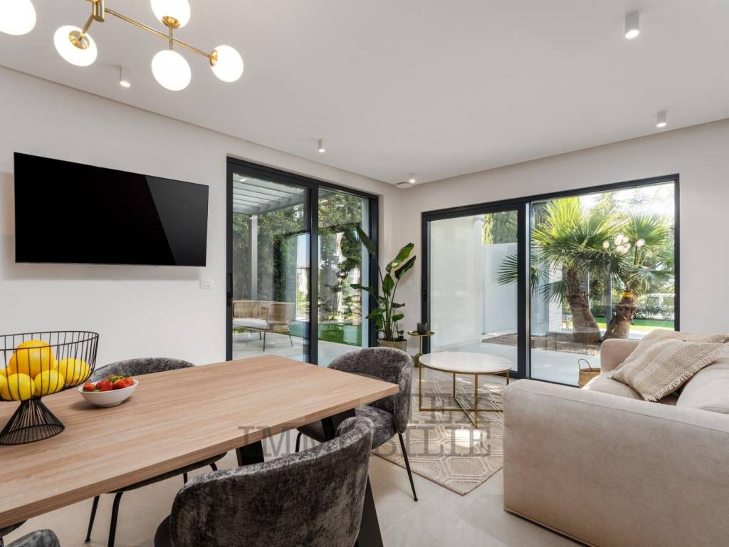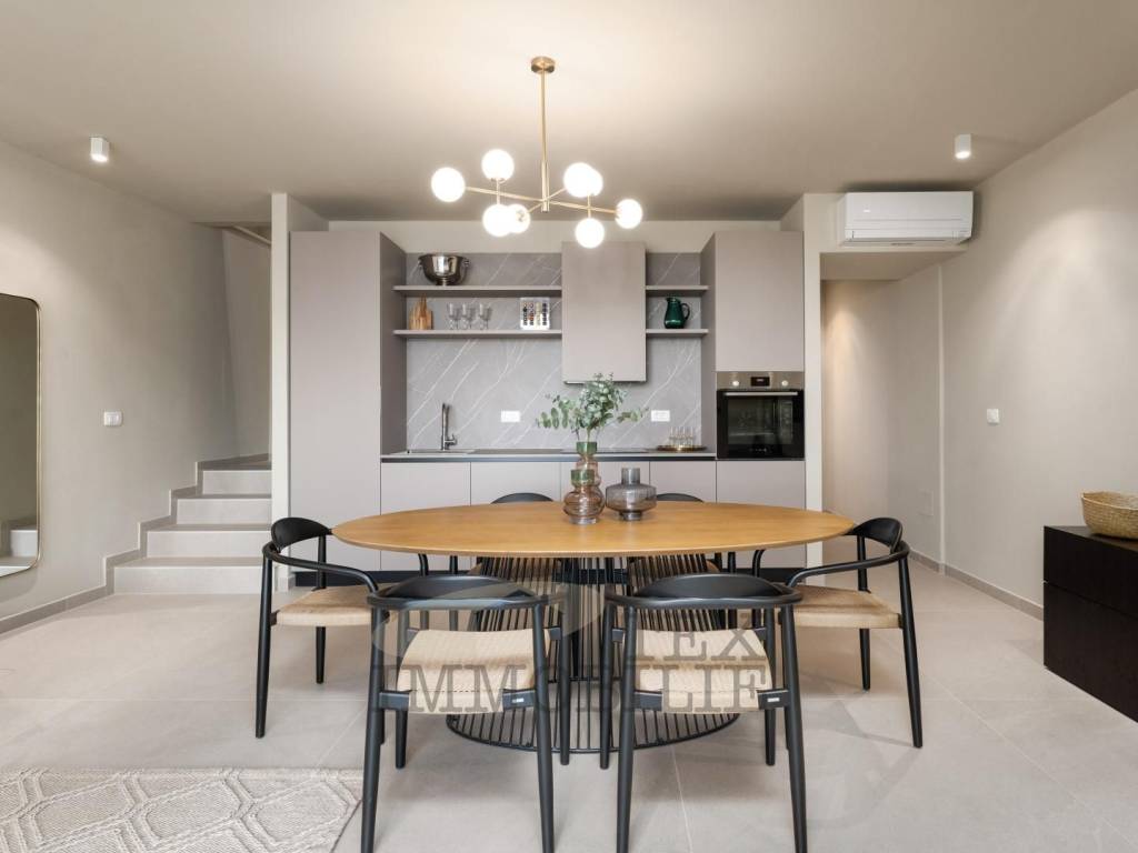 U prizemlju svake jedinice nalazi se svijetli dnevni boravak ukrašen velikim staklenim stijenama i prozorima, promišljeno dizajnirana kuhinja s elegantnom modernom estetikom, udoban prostor za spavanje s ormarom, dobro opremljena kupaonica, dodatna ostava, i još jedna elegantno uređena kupaonica. Drugi kat svakog apartmana ima dvije očaravajuće spavaće sobe, svaka sa svojom privatnom kupaonicom i terasom s koje se pruža prekrasan pogled na more.
