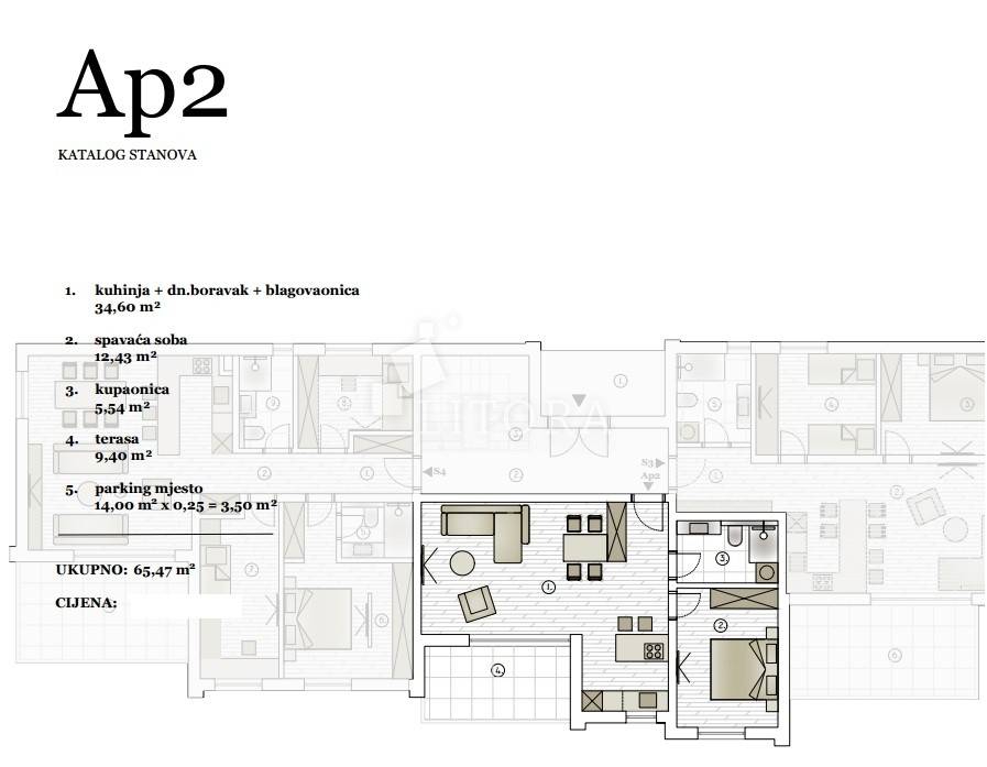 Vodice, novogradnja, apartmana 65,47m2, terasa s pogledom na more