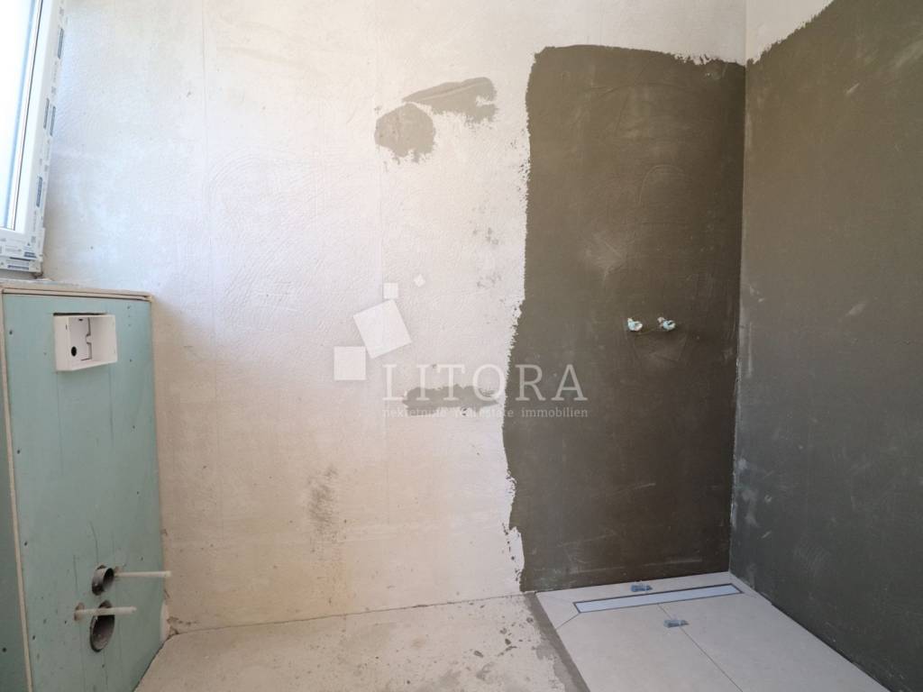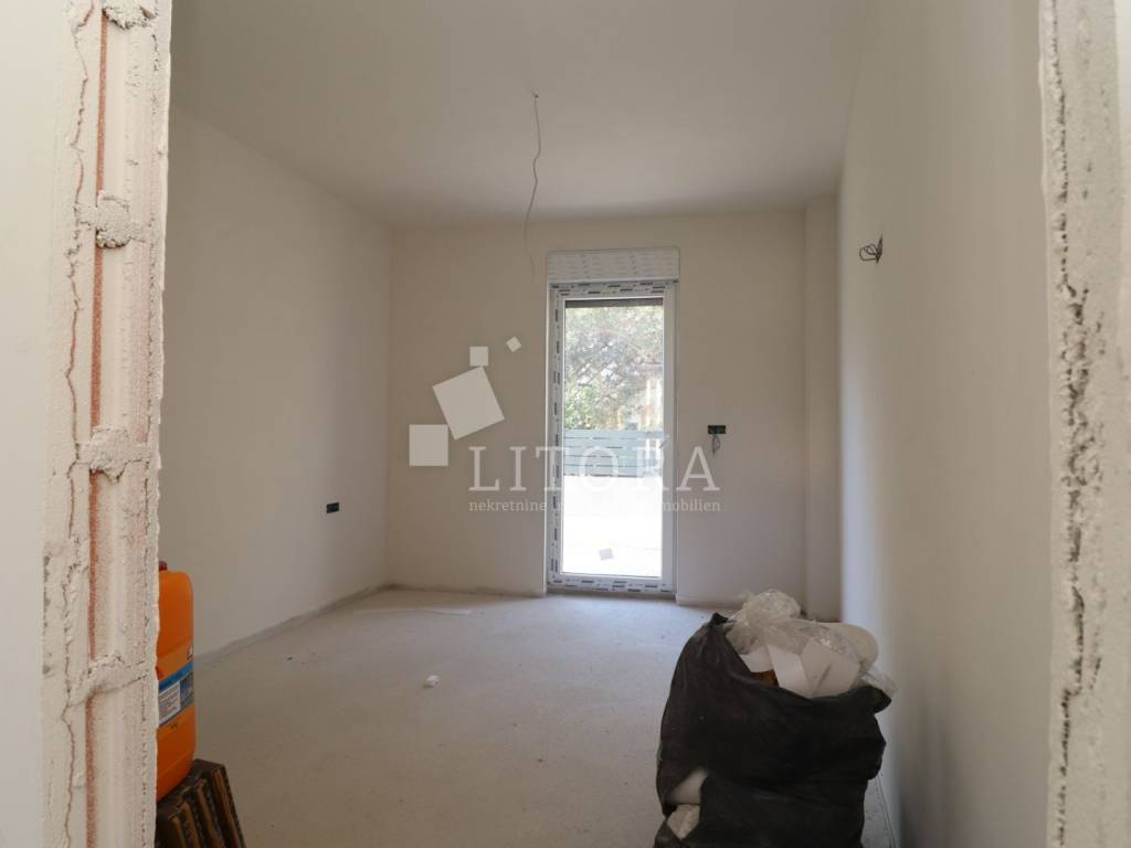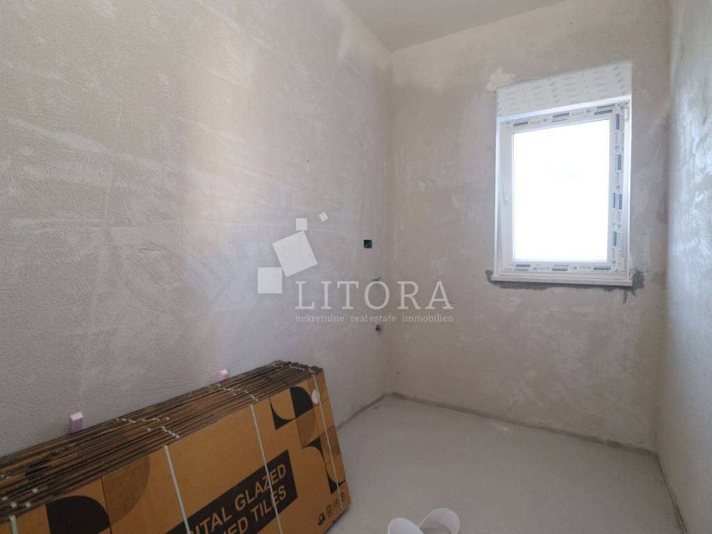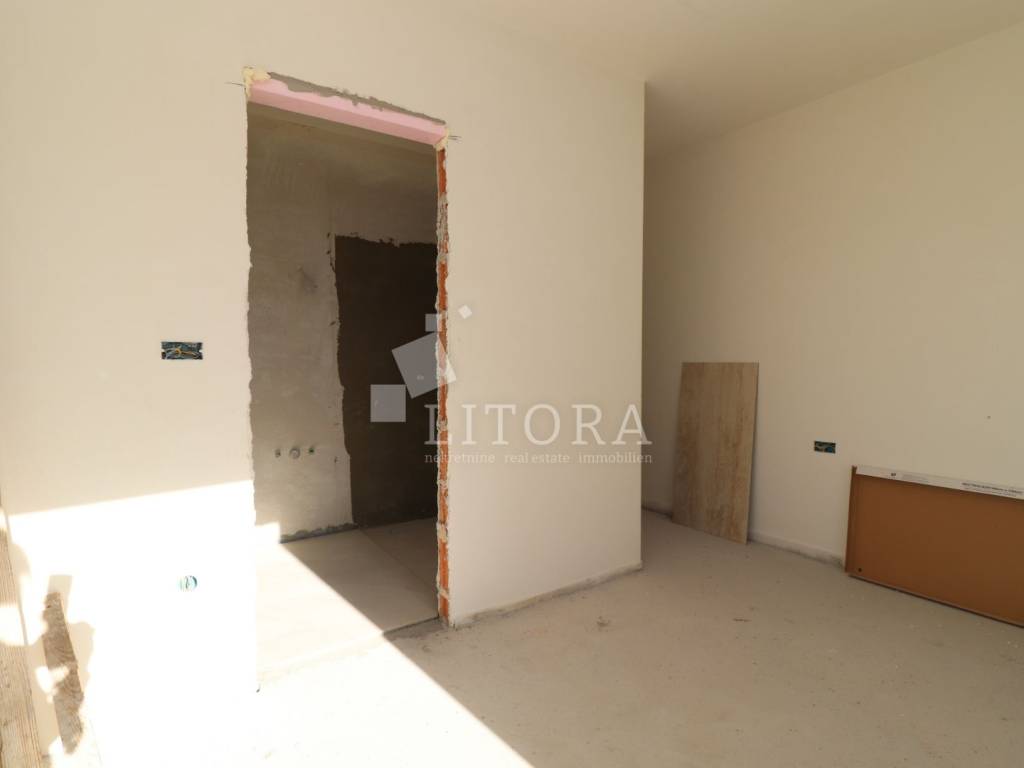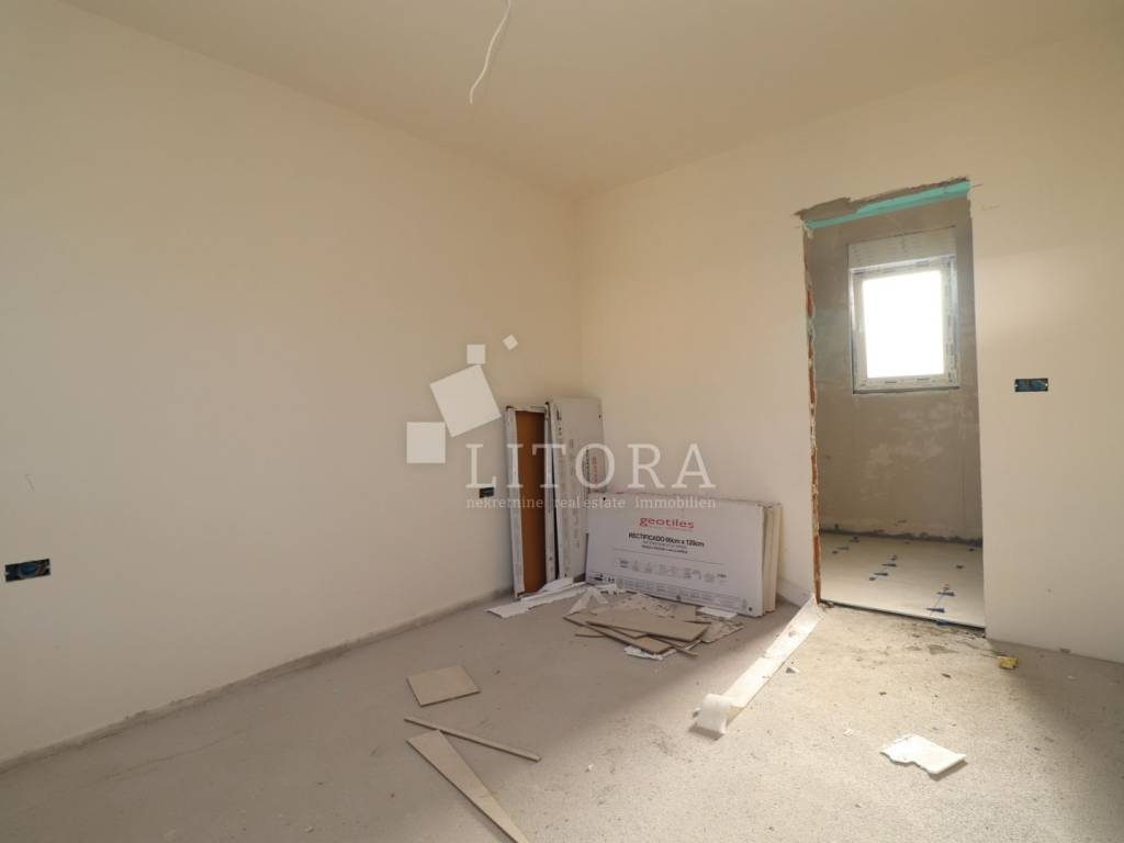 Žaborić – 3. red do mora obiteljska dvojna kuća moderne arhitekture na mirnoj lokaciji. Kuća ima dvije etaže (prizemlje + 1. kat), s ukupnom korisnom površinom od 115,08 m². Zelena površina površine 76,66 m2, velika terasa, 2 parkirna mjesta. Prizemlje se sastoji od predsoblja, spavaće sobe, kupaonice, te dnevnog boravka sa kuhinjom i blagovaonicom sa izlazom na terasu površine 11,79 m2. Unutarnje stepenice vode na 1. kat gdje se nalazi vešeraj, dvije spavaće sobe svaka sa vlastitom kupaonicom, terasa. Kuća je opremljena: visokokvalitetnim keramičkim oblogama, klima-uređaji u svim prostorijama, staklene ograde, podno grijanje u dnevnom boravku i kupaonicama. Udaljenost do plaže je 70 m, 450m do centra mjesta.