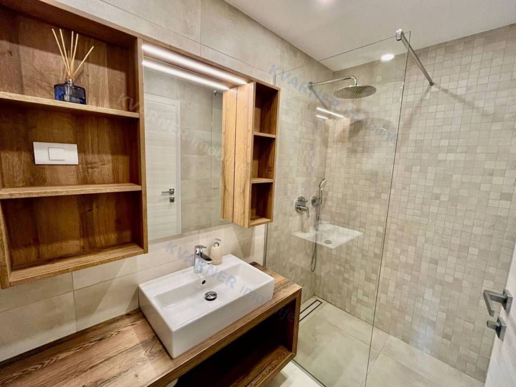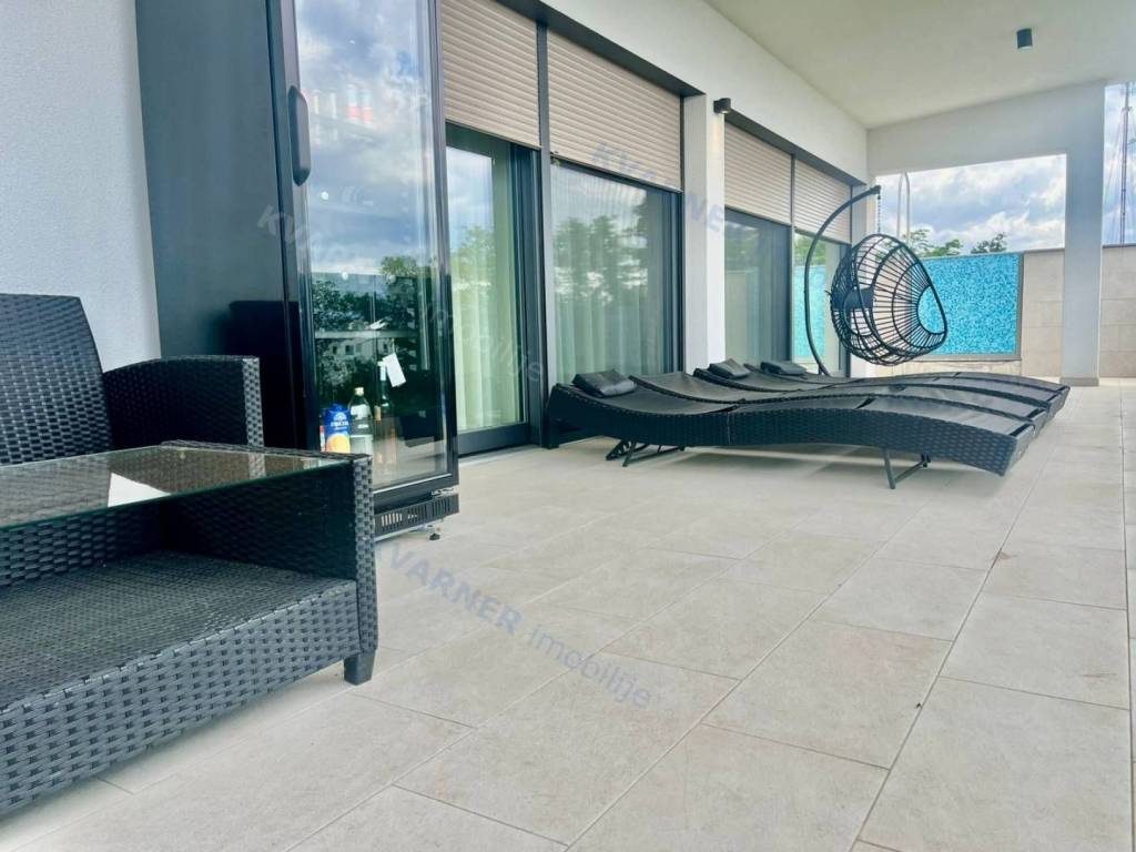 Uživajte u luksuznom životu u ovom elegantnom apartmanu smještenom na drugom katu novogradnje, površine 160 m² i ukupne površine 194 m². Ovaj prostrani apartman proteže se kroz cijelu etažu i nudi predivan pogled na more iz gotovo svih dijelova stana. Apartman se sastoji od tri prostrane spavaće sobe, svaka s vlastitom kupaonicom, dodatnog toaleta, funkcionalnog vešeraja, spremišta te velike kuhinje spojene s blagovaonicom i dnevnim boravkom. Terasa okružuje kuhinju i dnevni prostor, s natkrivenim dijelom koji obuhvaća sunčalište i lounge prostor, dok se na otvorenom dijelu nalazi bazen s prekrasnim pogledom na more. Pogled na more pruža se kroz cijelu terasu, kao i iz spavaćih soba, čime je osiguran osjećaj luksuza i opuštanja. Apartman je moderno i minimalistički uređen te mu pripadaju tri parkirna mjesta ukupne površine 37 m² i okućnica od 74 m². Ova nekretnina predstavlja poseban dragulj zbog svoje izvrsne lokacije, promišljenog rasporeda prostorija i vrhunskog uređenja. Idealna je za one koji traže savršeno mjesto za odmor ili luksuzan život uz more. Za više informacija i dogovor oko razgledavanja, slobodno nas kontaktirajte.