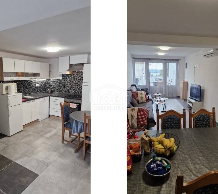 CRIKVENICA Potpuno opremljeni apartman od 52 m2 s velikom terasom, spremištem i parkirnim mjestom smješten u prizemlju stambene zgrade s osam apartmana. Apartman se sastoji od dnevnog boravka s kuhinjom i blagovaonom, jedne spavaće sobe i kupaone. Terasa južne orijentacije od 21 m2 omogućuje boravak na otvorenome tijekom čitavog dana. Zgrada i apartman potpuno su nedavno adaptirani i tom prilikom postavljene su nove instalacije za struju i vodu, nova fasada s odličnom toplinskom izolacijom (A+) i novi krov tako da nisu potrebna dodatna ulaganja. Parkirno mjesto u vlasništvu i blizina mora jamče bezbrižan boravak i uživanje u moru i prekrasnim šetnjama, a nekretnina je odlična i kao investicija za bavljenje turističkim iznajmljivanjem. Uredna vlasnička dokumentacija, mogućnost kupnje na kredit. Za sve dodatne informacije i organizaciju razgledavanja nekretnine molimo kontaktirajte agenta na broj 091/5676553 ili na astrid.pavesic@lider.hr. .
