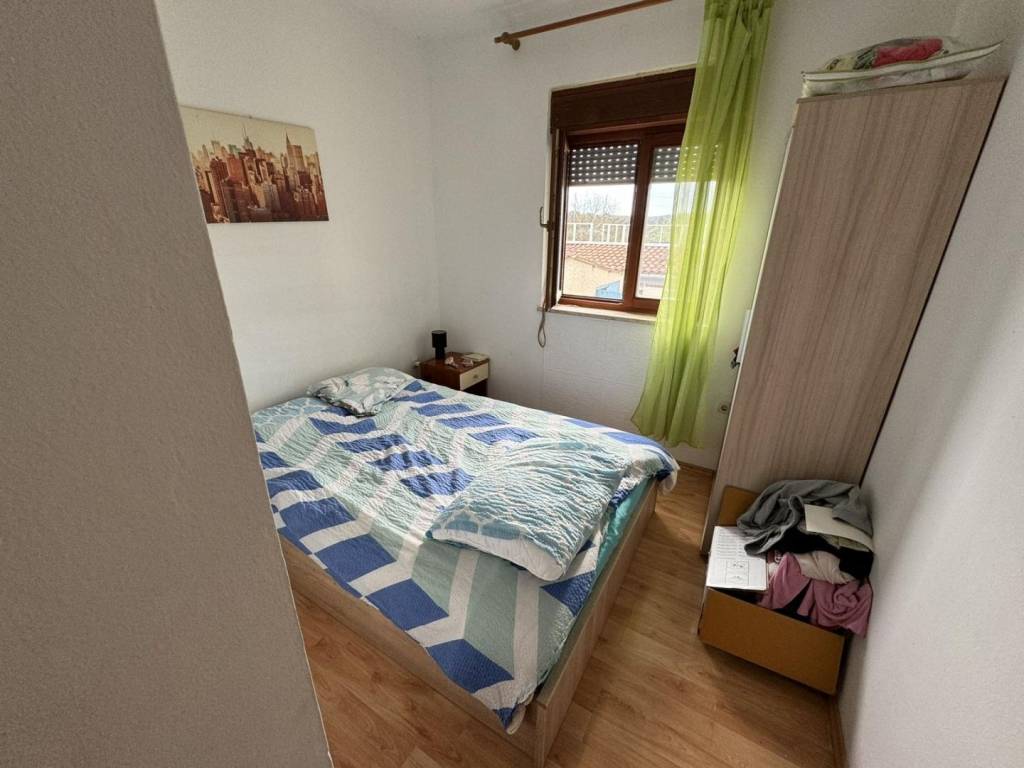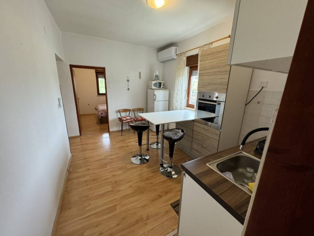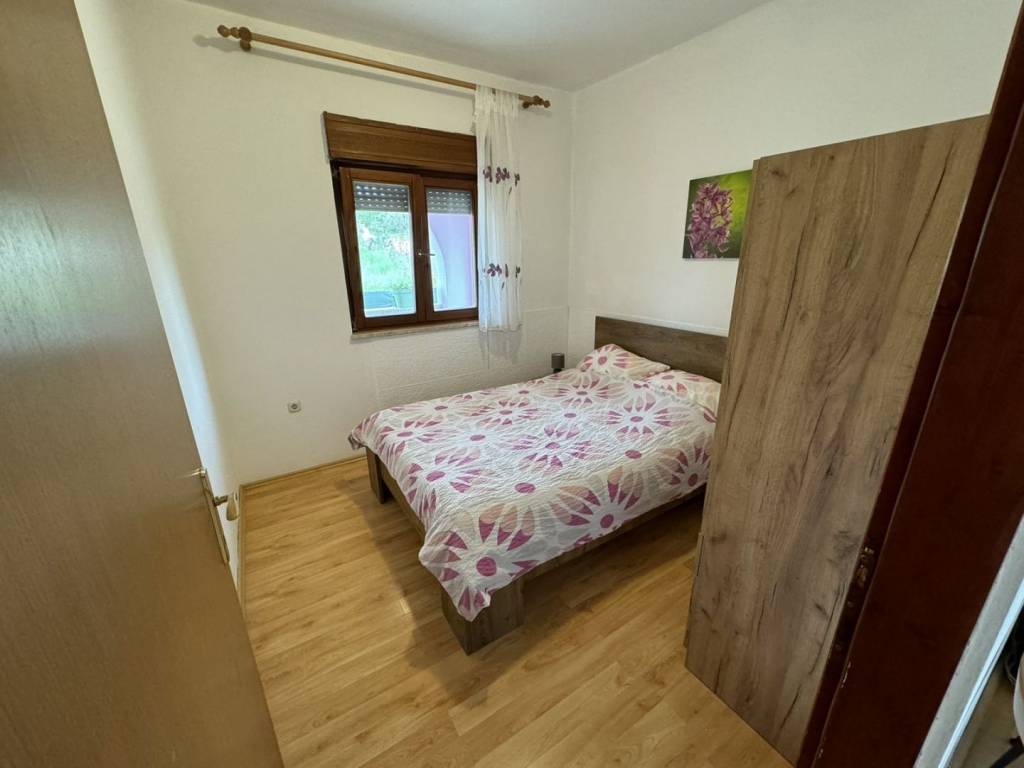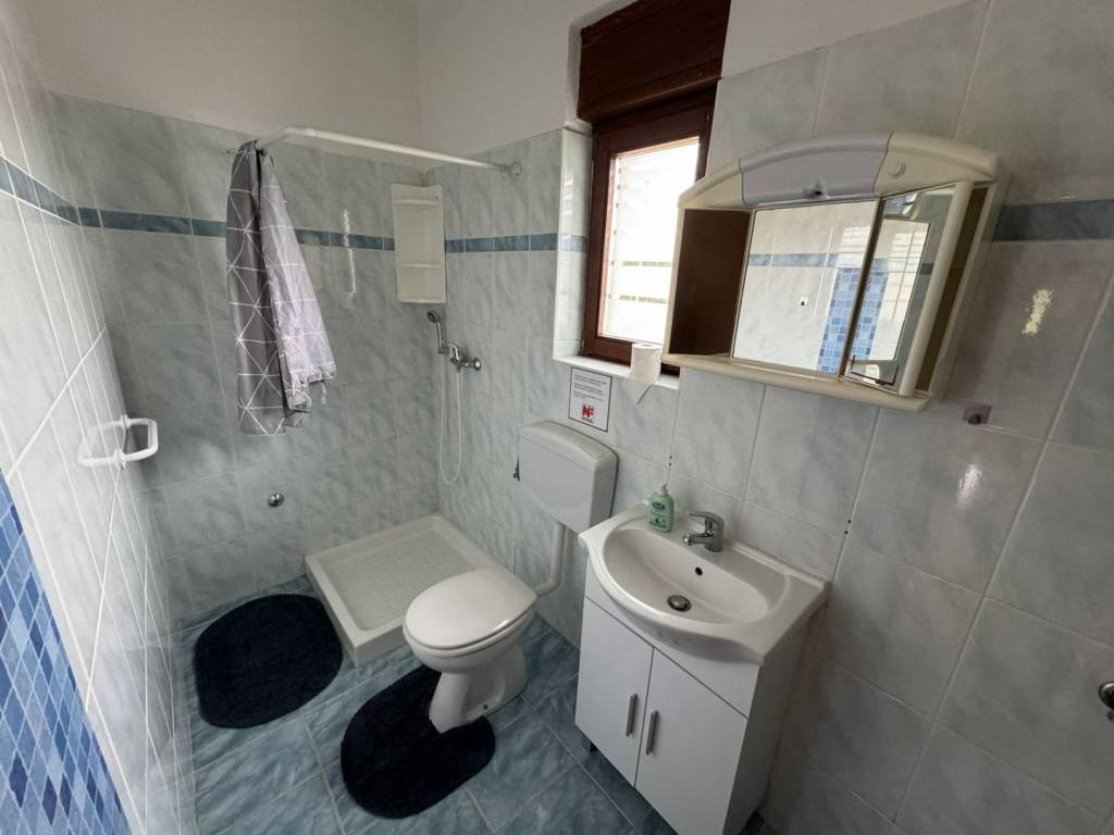 On the first floor there is an apartment with an area of 110 m2, consisting of three bedrooms, two bathrooms, kitchen, dining room and living room. The living room opens onto a terrace with a beautiful view of the sea.