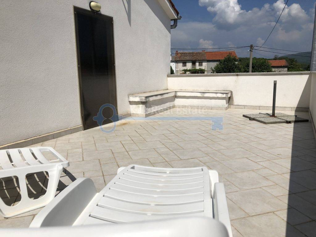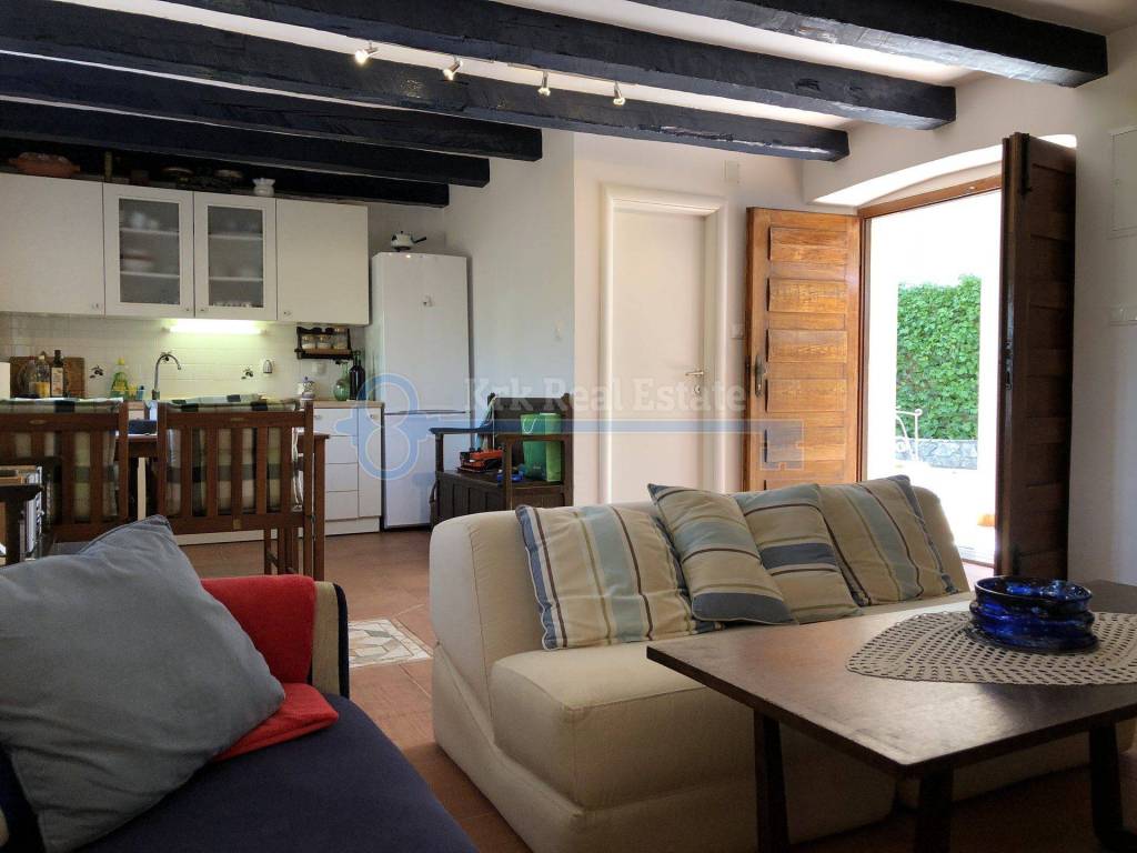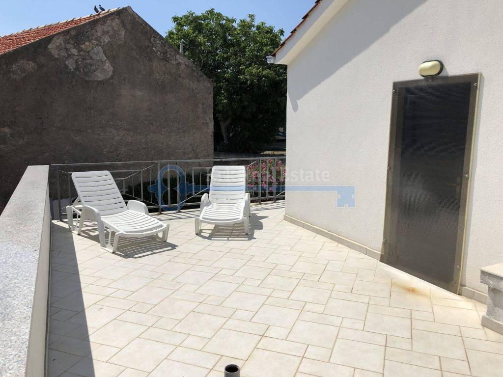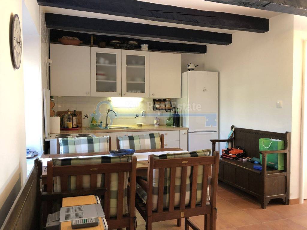 Na prodaju je renovirana kamena kuća stambene površine od 103 m2 sa garažom. Kuća se sastoji od dnevnog boravka, kuhinje i blagavaonice, kupaonice i terase u prizemlju, i dvije spavaće sobe s kupaonicom na prvom katu. Na uređenoj okućnici nalazi se kamin i terasa. Nalazi se na mirnoj lokaciji, udaljena je od mora 1200 metara, a od centra samo 200 metara.