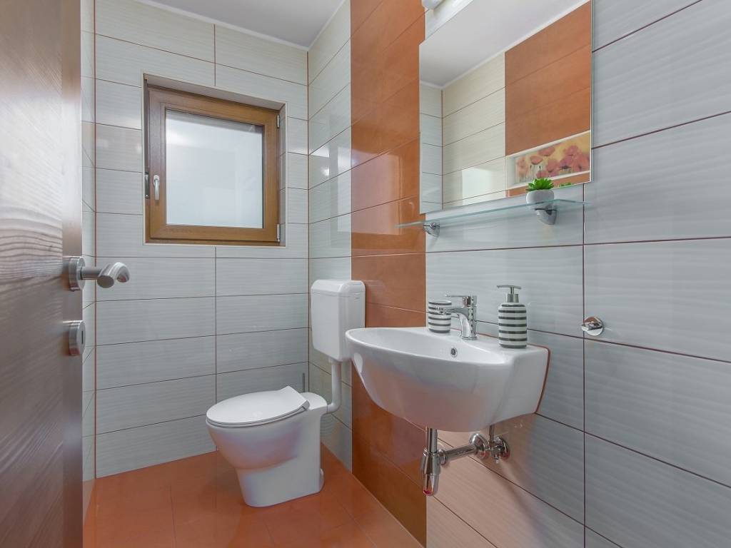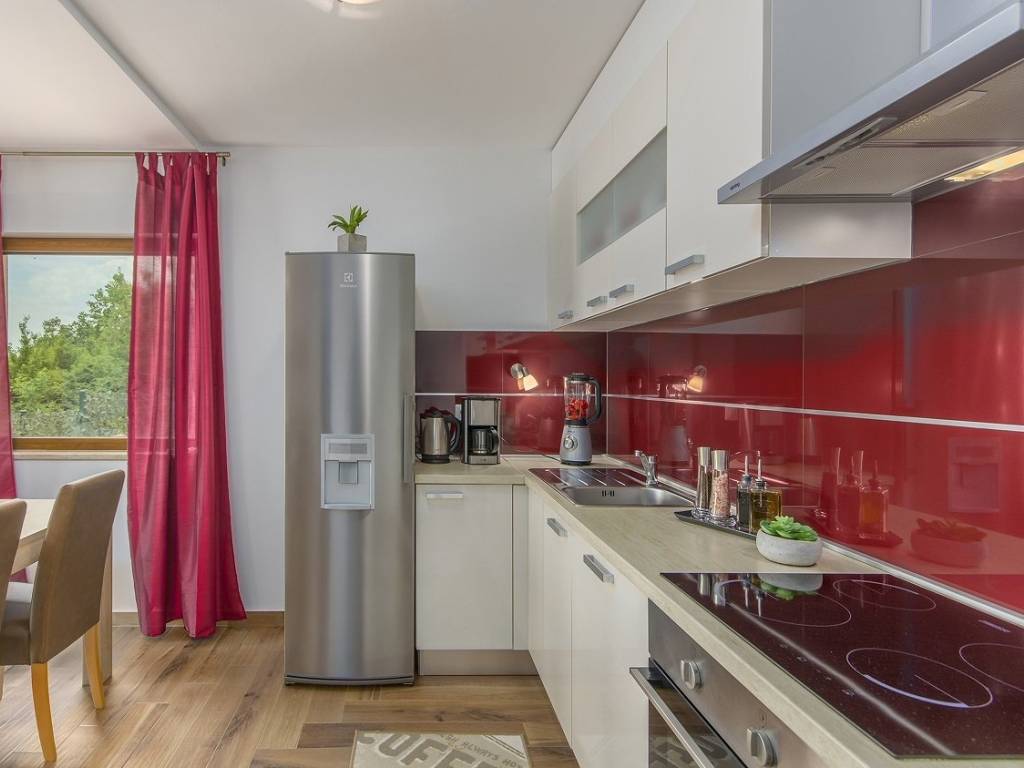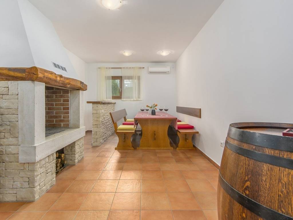 U prizemlju se nalazi spavaća soba , kupatilo, dnevni boravak, kuhinja, gostinjski WC te prostrana konoba s autohtonim istarskim kaminom i zasebnim kupatilom.
