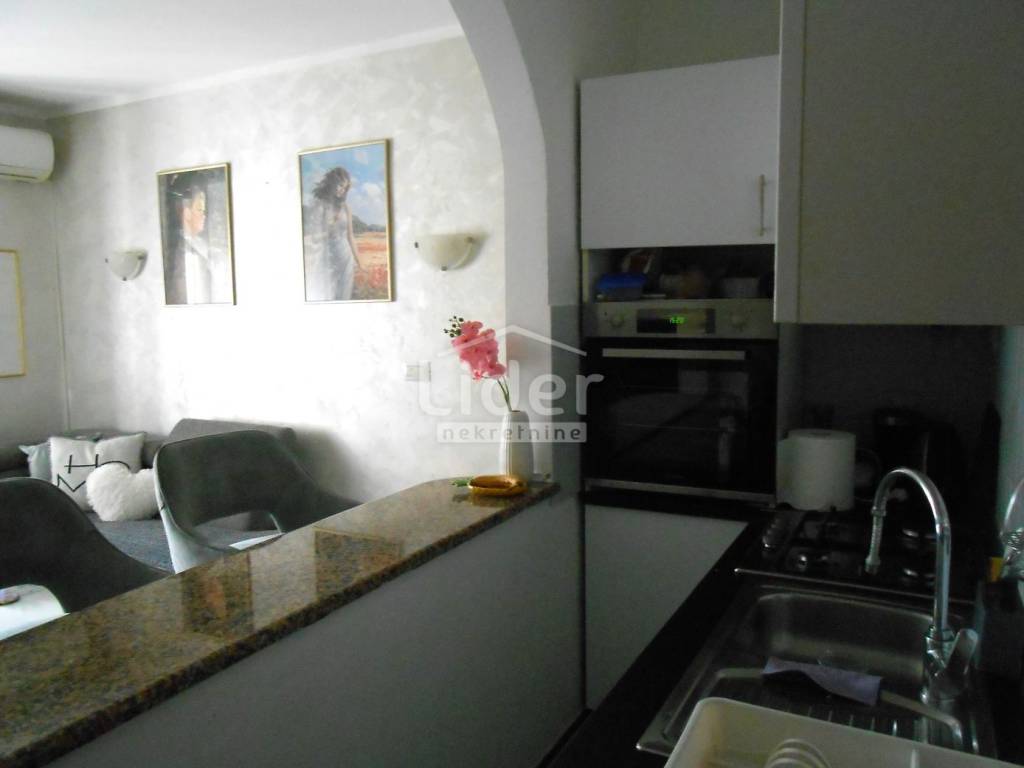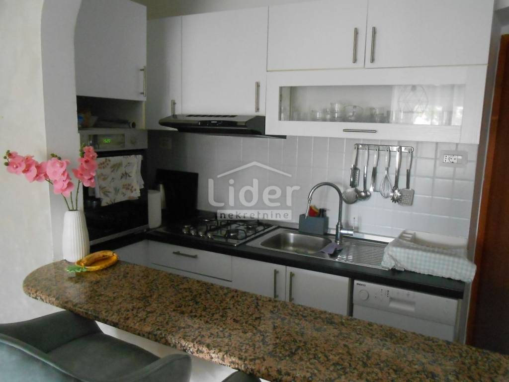 Sastoji se od otvorenog prostora s dnevnim boravkom i kuhinjom, blagovaone, dvije komforne spavaće sobe, kupaone i zasebnog wc-a.