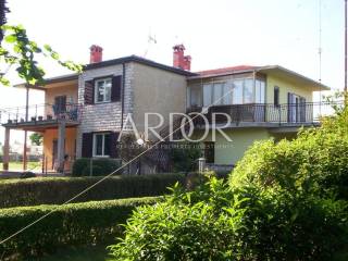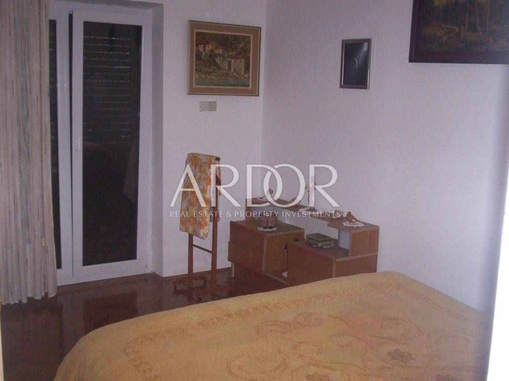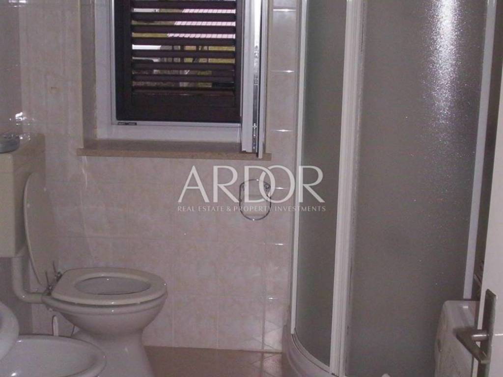 U prizemlju se nalaze 2 apartmana, površine 60 i 50 m2, ured i kotlovnica. Pored kuće se nalazi garaža za 2 auta, te ljetna kuhinja sa ukopanim podrumom. Okućnica obiluje sadnicama maslina, stablima lješnjaka, oraha, badema, trešnji, jabuka, kruški i šljiva.