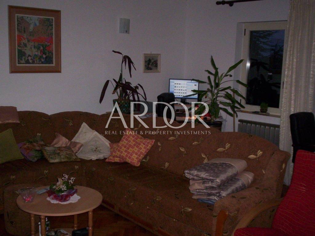 Na katu kuće nalazi se prostrani stan; 3 spavaće sobe, veliki dnevni boravak, kuhinja s ostavom, trpezarijom, 2 kupaonice te 2 velike terase s pogledom na okolinu.