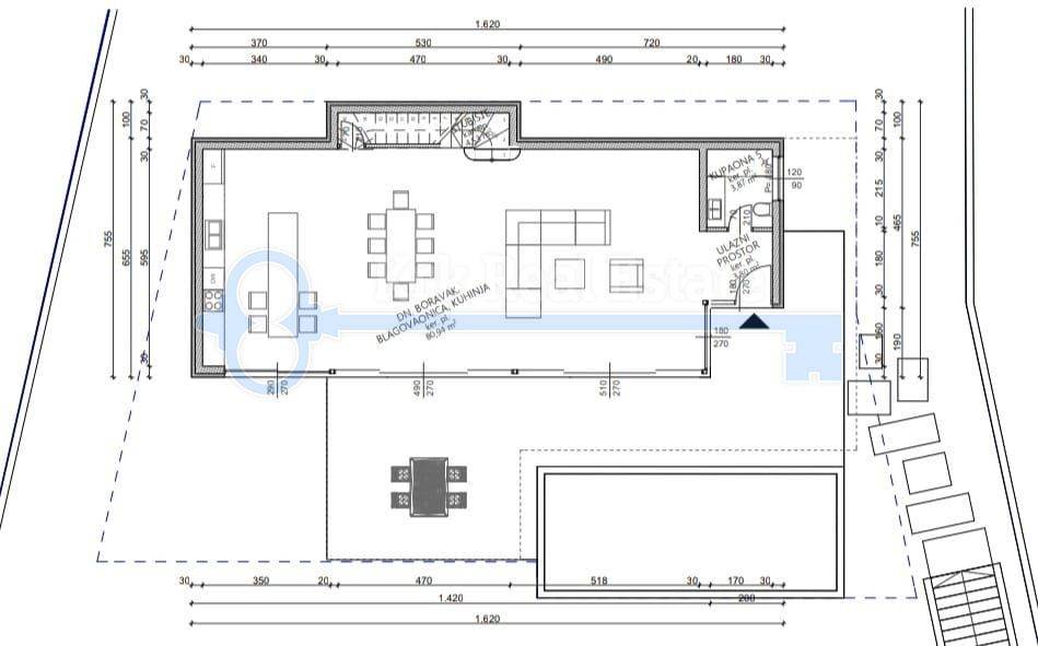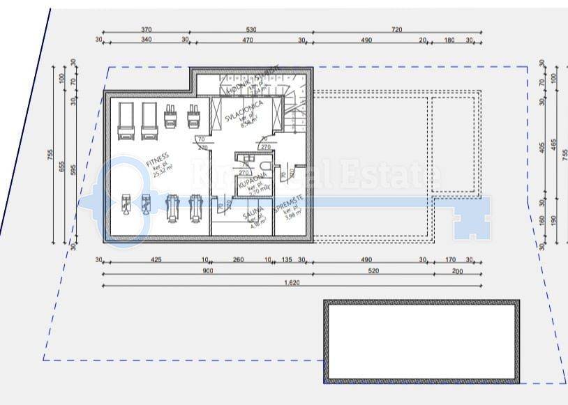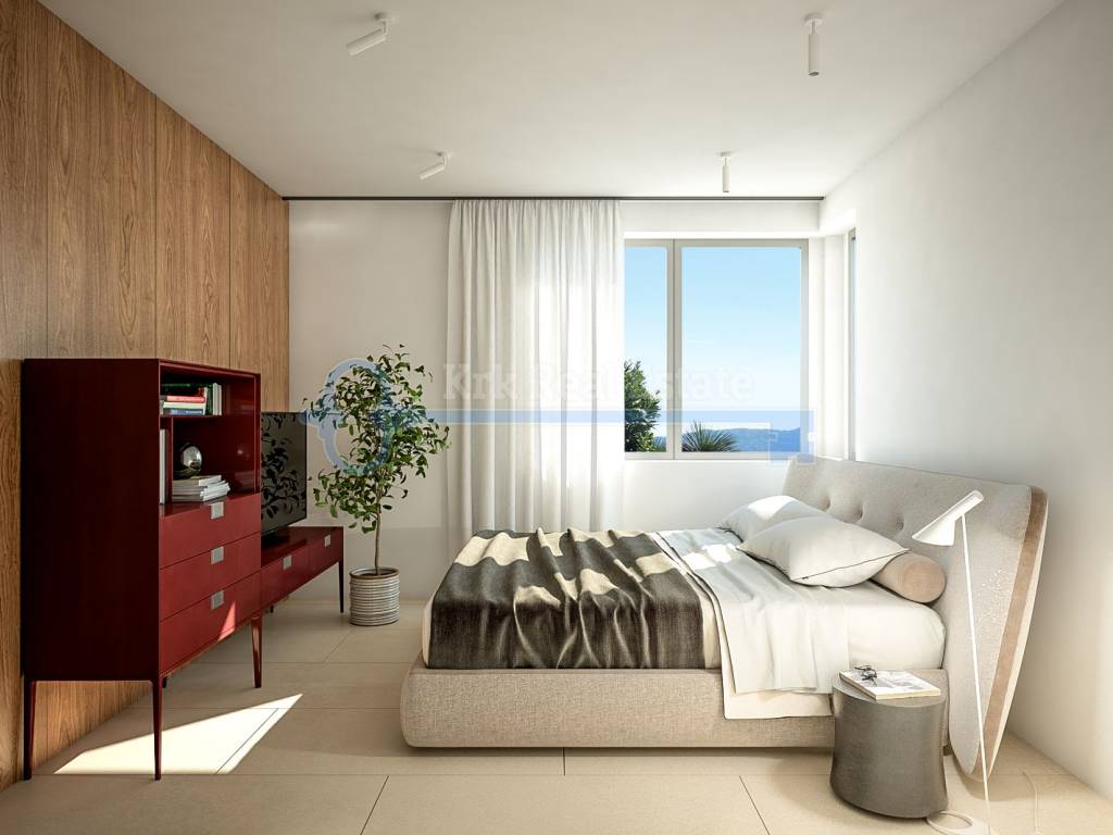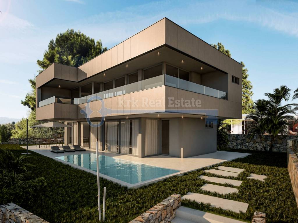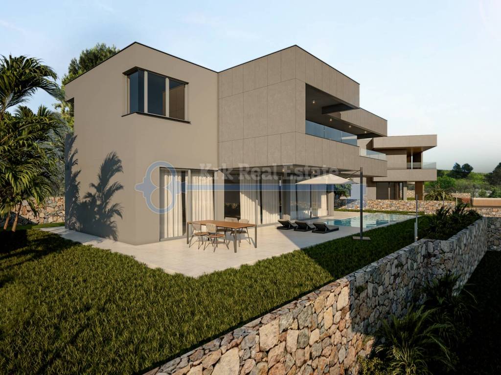 Na prodaju je luksuzna vila u izgradnji stambene površine od 272.36 m2. Sastoji od podruma, prizemlja i prvog kata. U podrumu se nalazi hoidnik, fitness, svlačionica, sauna, kupaonica i spremnište. U prizemlju se nalazi ulazni prostor, dnevni boravak sa kuhinjom i blagovaonicom, kupaonica i velika terasa površine 32.75 m2. Na prvom katu se nalaze četiri spavaće sobe sa kupaonicama i balkon površine 34.73 m2. Pripada joj okućnica sa bazenom. Nalazi se na mirnoj lokaciji, udaljena od mora i plaže 550 metara.