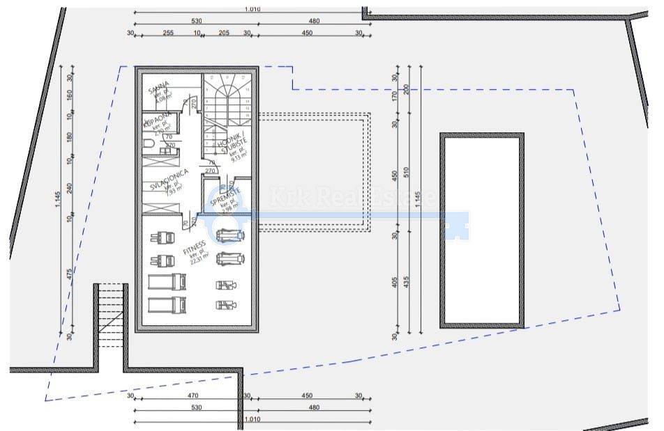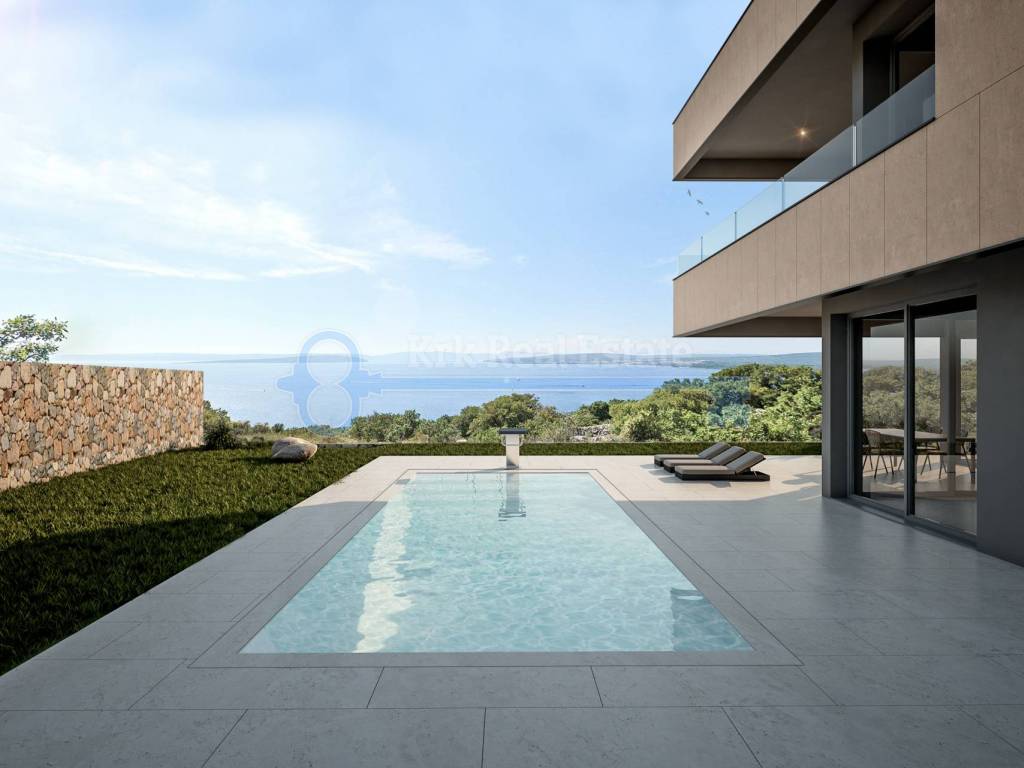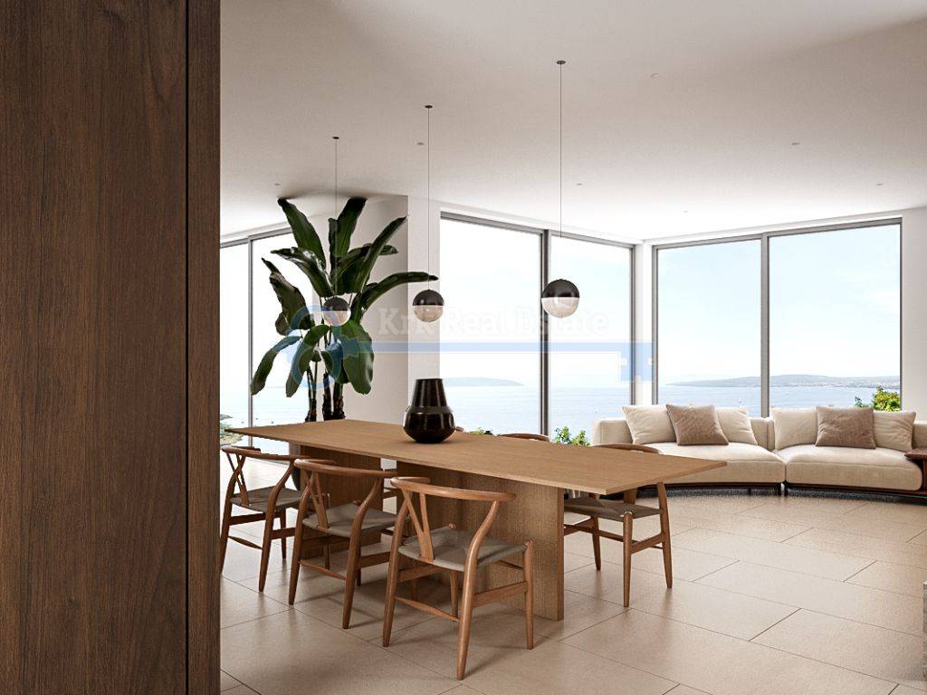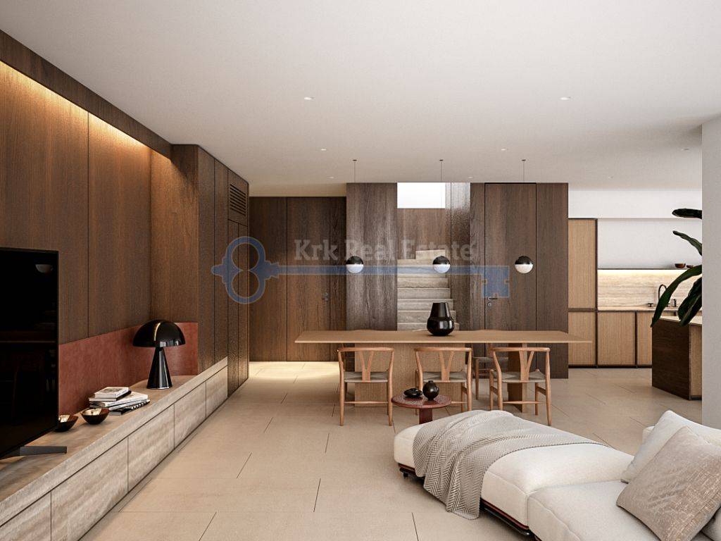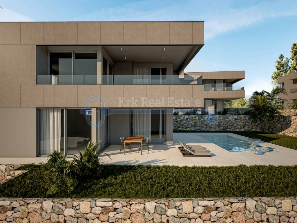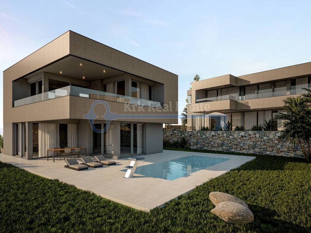 Na prodaju je luksuzna vila u izgradnji stambene površine od 221.6 m2. Sastoji od podruma, prizemlja i prvog kata. U podrumu se nalazi hodnik, fitness, svlačionica, sauna, kupaonica i spremnište. U prizemlju se nalazi ulazni prostor, dnevni boravak sa kuhinjom i blagovaonicom, kupaonica i velika terasa površine 32,68 m2. Na prvom katu se nalaze tri spavaće sobe sa kupaonicama i garderobama, te balkon površine 25.98 m2. Pripada joj okućnica sa bazenom. Nalazi se na mirnoj lokaciji, udaljena od mora i plaže 500 metara.