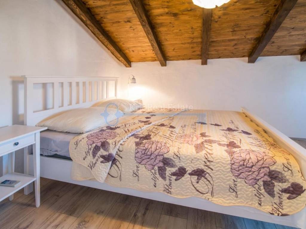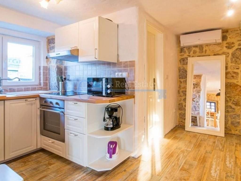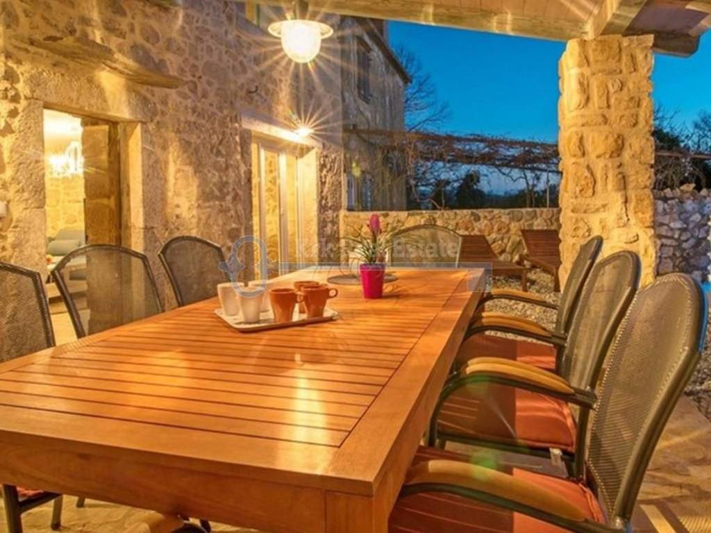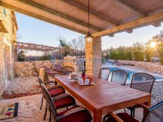 Na prodaju je renovirana kamena kuća stambene površine 160 m2. Sastoji se od prizemlja sa hodnikom, kuhinjom i blagovaonicom, dnevnim boravkom i kupaonicom. Na prvom i drugom katu se nalaze četiri spavaće sobe i dvije kupaonice. Pripada joj okućnica površine 500 m2 sa bazenom.