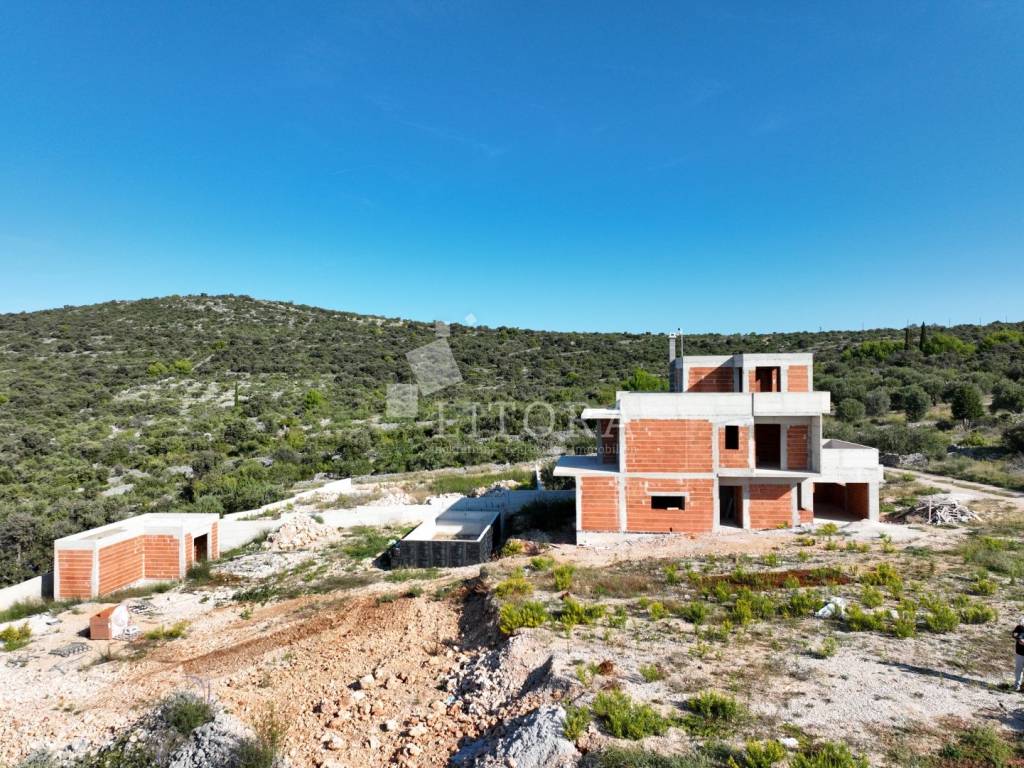 Ražanj – Novoizgrađena obiteljska kuća u grubim radovima s pogledom na more i bazenom.