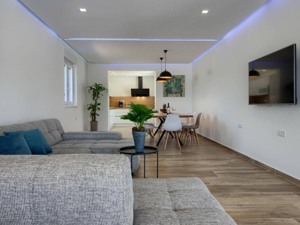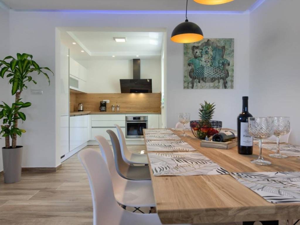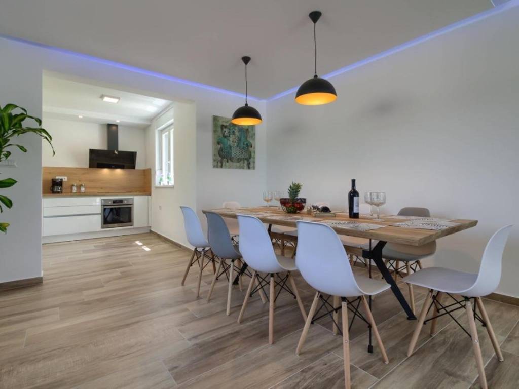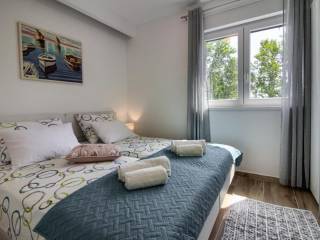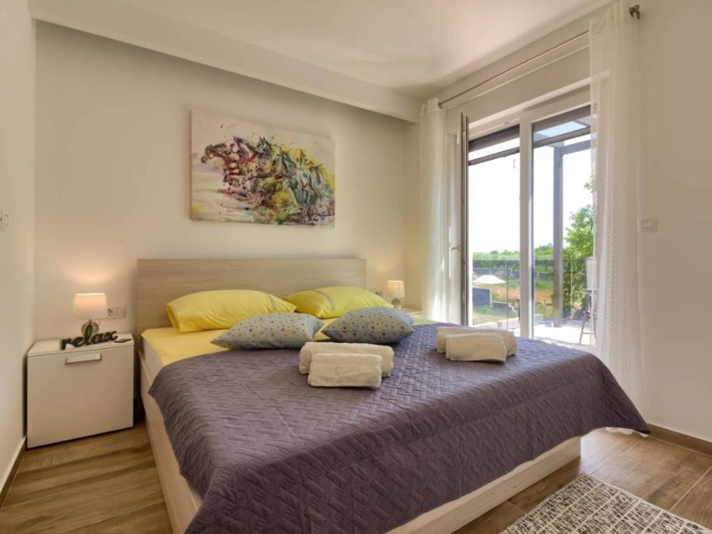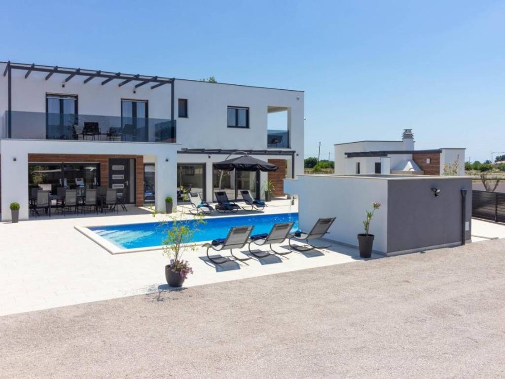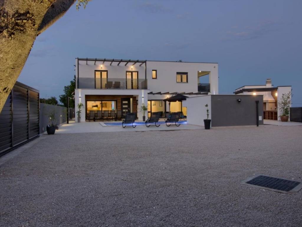 U ponudi imamo ovu modernu prostranu kuću u okolici Pule koja ima već dobro uhodani posao najma. Kuća se sastoji od dva dijela. Prvi veći dio kuće ima dnevni boravak, wc za goste i jednu spavaću sobu sa kupaonicom u prizemlju te naravno izlaz na bazen. na prvom katu su još 4 spavaće sobe, svaka sa svojom kupaonicom. Do ovog dijela kuće nalazi se manji apartman sa dnevnim boravkom, kuhinjom i kupaonicom u prizemlju te spavaćom sobom sa svojom kupaonicom na katu. Cijela kuća je naravno klimatizirana a bazen je grijani što omogućuje i najam u zimskim mjesecima. Bazen je i opremljen hidromasažnim funkcijama. Pokraj bazena se nalazi još jedan gostinjski wc. Cijela okućnica ima navodnjavanje. Sama lokacija je odlična jer pruža mirno okruženje, a opet svega 10 min udaljena od Pule i svih gradskih sadržaja. Više na upit.