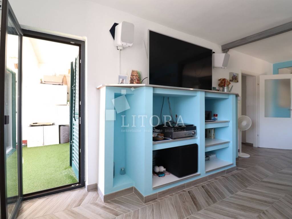 Tisno – prostrani trosobni apartman s garažom i terasom s pogledom na more.