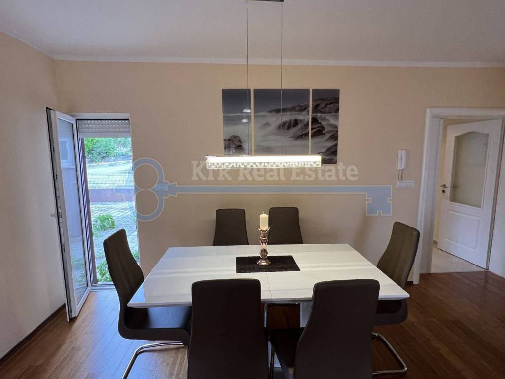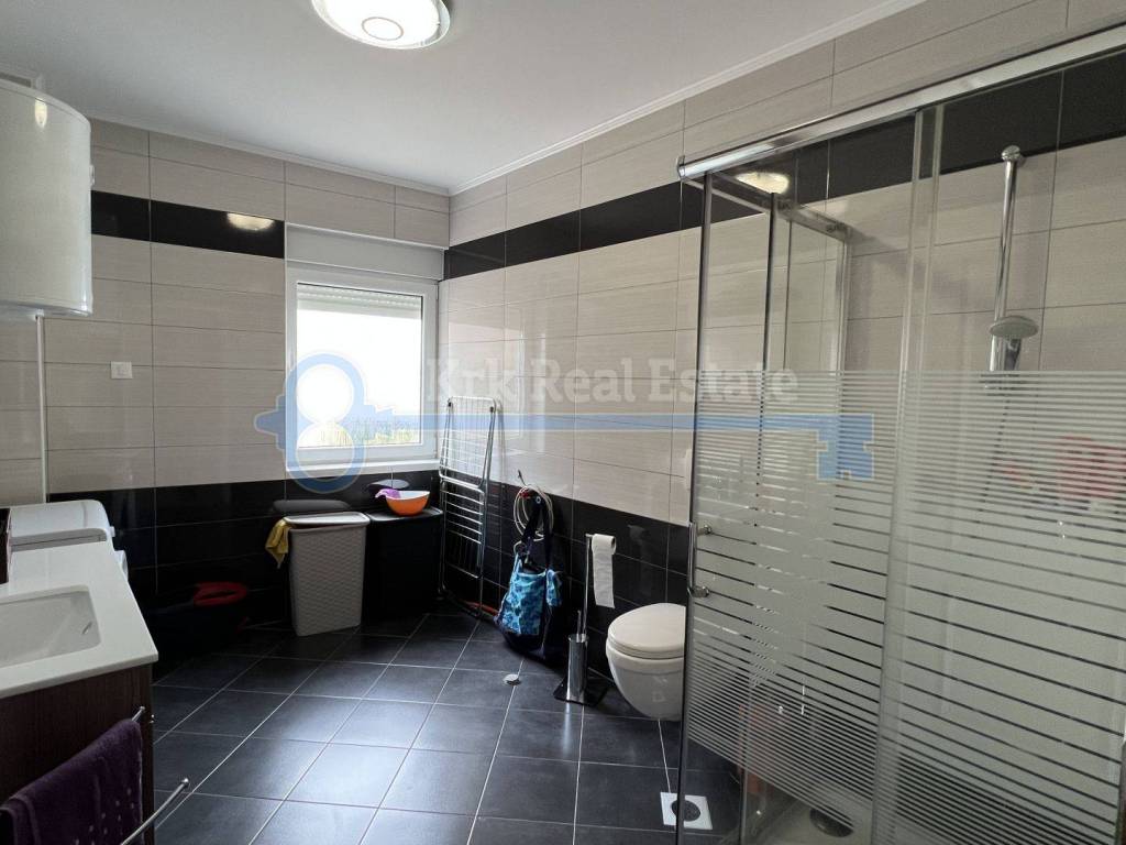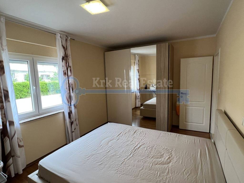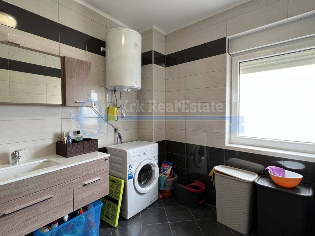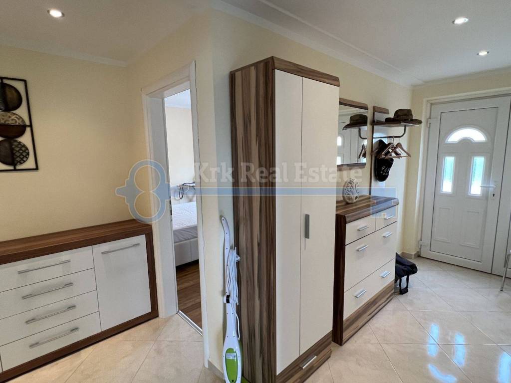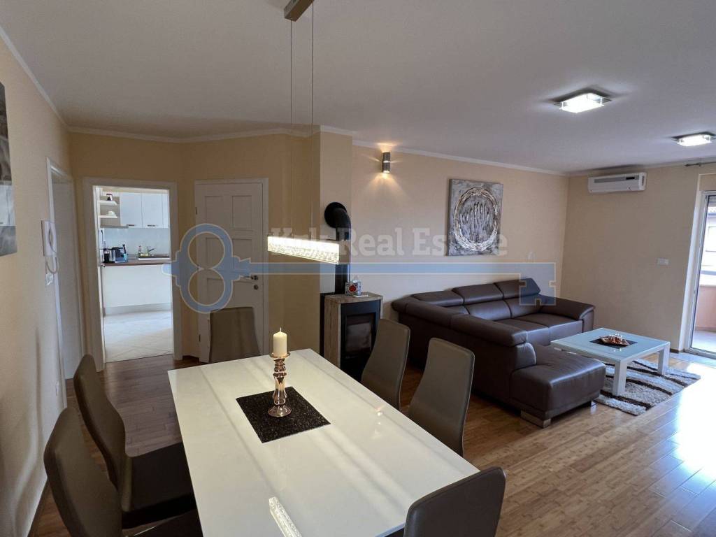 Na prodaju je apartman u prizemlju stambene površine od 100.23 m2. Sastoji se od hodnika, dnevnog boravka s kuhinjom i blagovaonicom, tri spavaće sobe, dvije kupaonice, wc-a i terase sa pogledom na more. Apartmanu pripada okućnica površine 80 m2, tri parkirna mjesta i garaža površine 26.43 m2. Nalazi se blizu mora i plaže na udaljenosti od 400 metara.