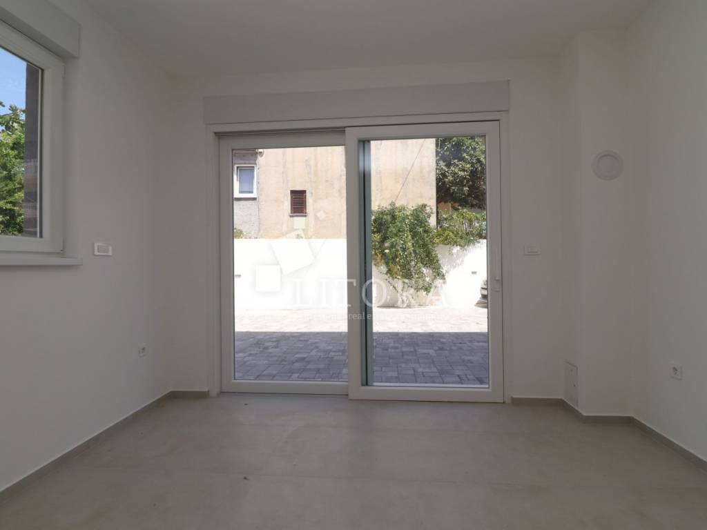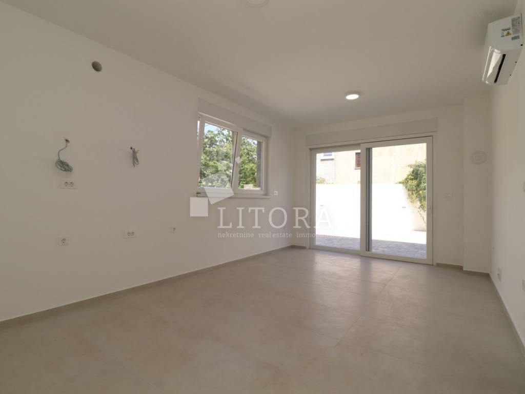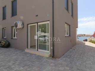 Apartman je odmah useljiv i opremljen dimnjakom, podnim grijanjem u kupaonici, električnim podizačima roleta, komarnicima, te termo fasadom. Dvorište je u potpunosti popločano i ograđeno, s otvorenim pogledom na more i otok Krapanj.