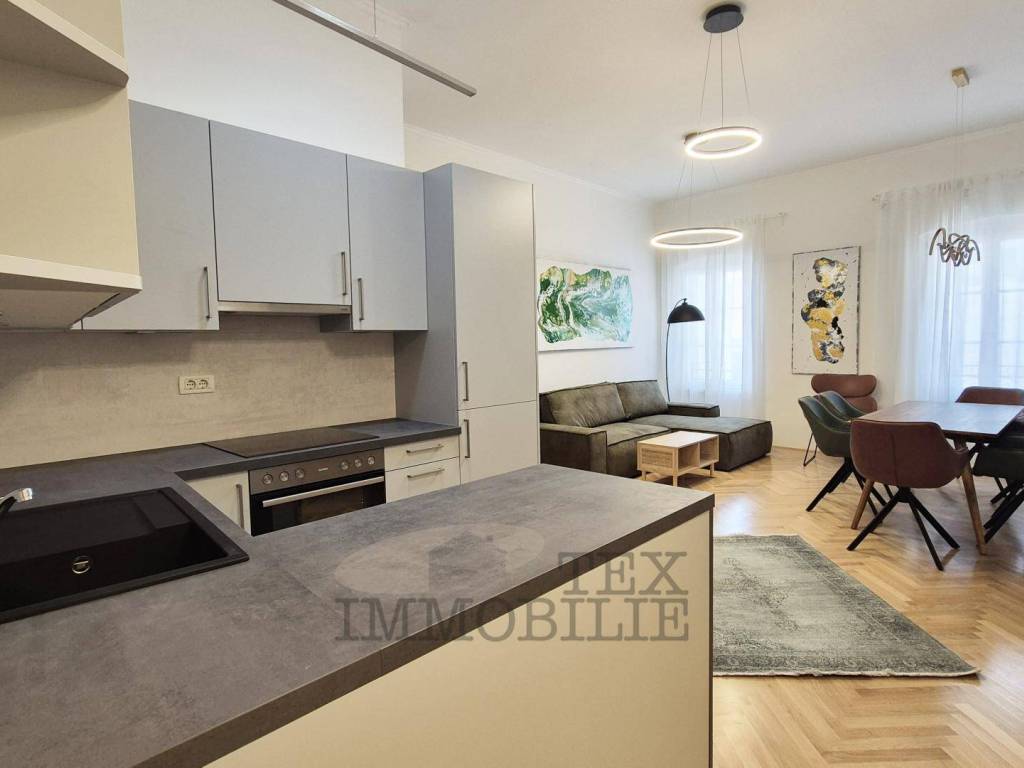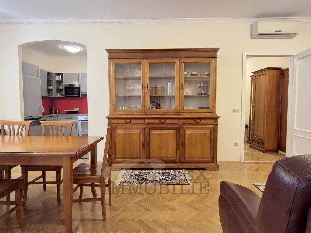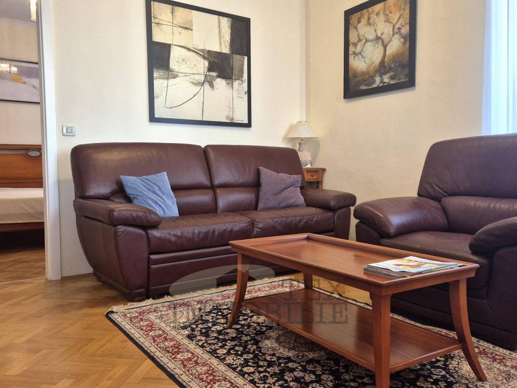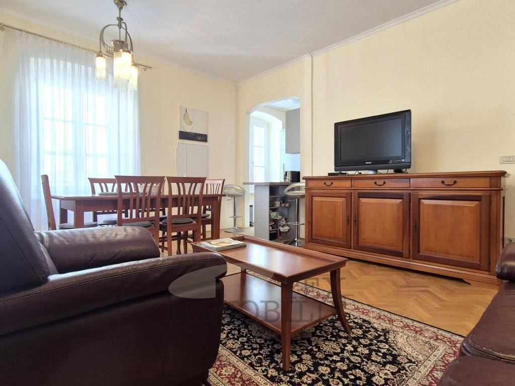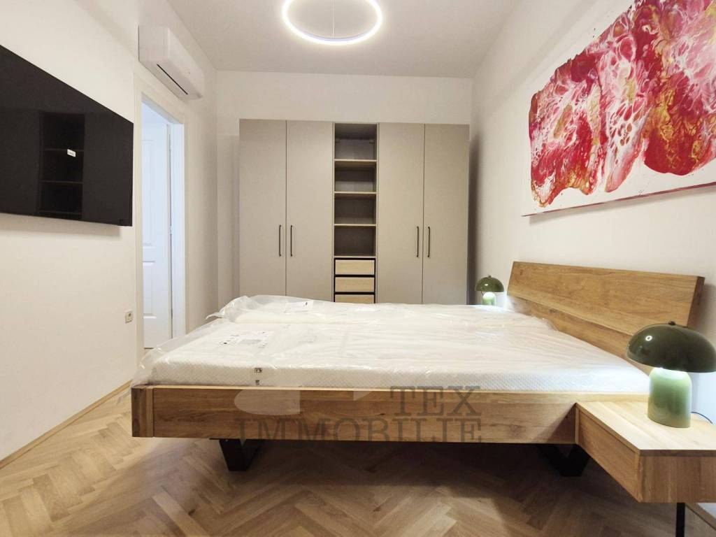 Elegantna jedinica s dvije spavaće sobe, prostranom blagovaonicom i potpuno opremljenom kuhinjom. Sastoji se od ulaznog hodnika s garderobom, kupaonice te dvije sobe, od kojih je jedna trenutno uređena kao dnevni boravak s radnim kutkom. Stan je u potpunosti obnovljen i klimatiziran.