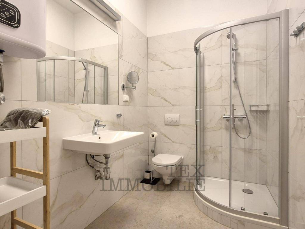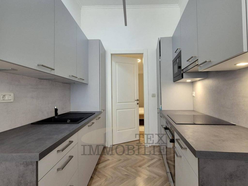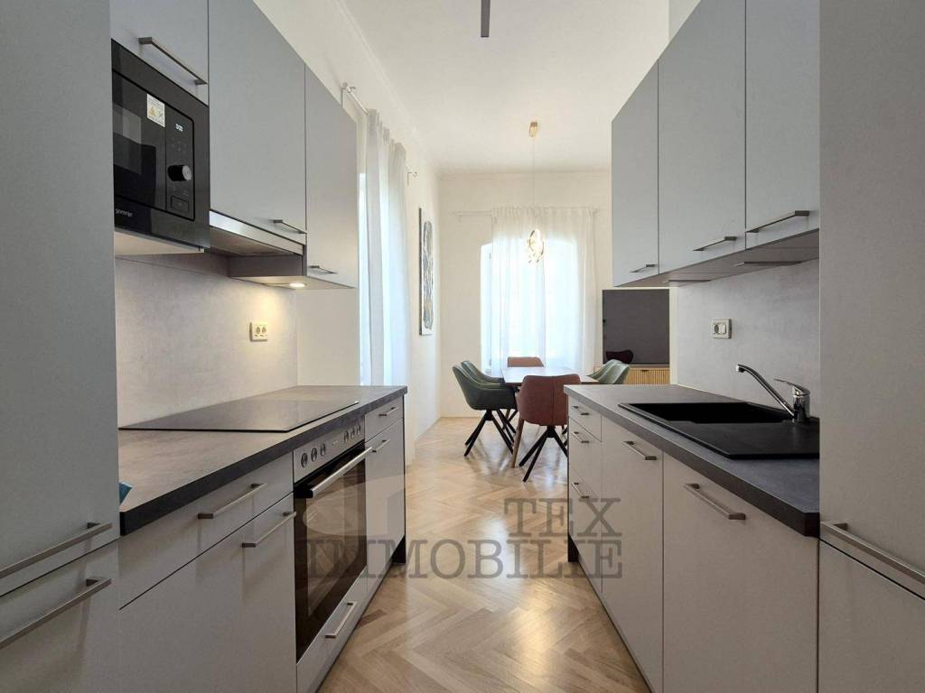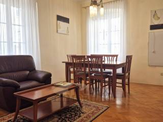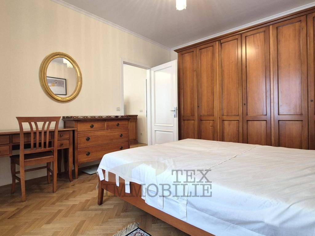 Elegantna jedinica s dvije spavaće sobe, prostranom blagovaonicom i potpuno opremljenom kuhinjom. Sastoji se od ulaznog hodnika s garderobom, kupaonice te dvije sobe, od kojih je jedna trenutno uređena kao dnevni boravak s radnim kutkom. Stan je u potpunosti obnovljen i klimatiziran.