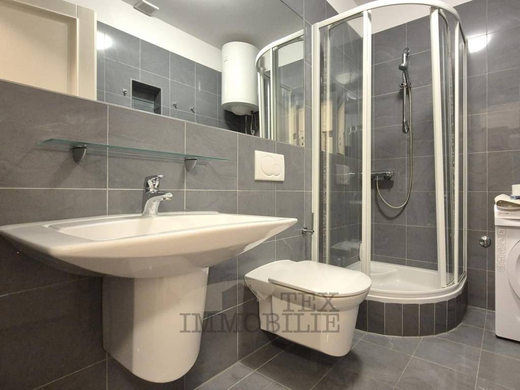 Šarmantan jednosoban apartman optimalnog rasporeda. Uključuje ulazni dio s garderobom, kupaonicu s tuš-kabinom i perilicom rublja, dnevni boravak s kuhinjom i blagovaonicom te odvojenu spavaću sobu s ugradbenim ormarom.