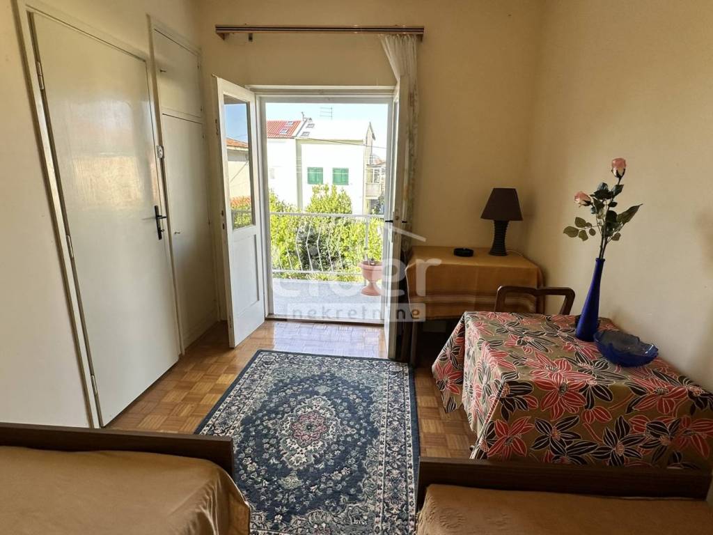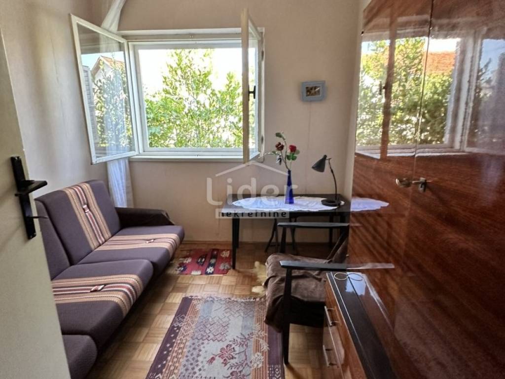 VODICE - samostojeću kuću sa okućnicom na samo 350m od mora prodajemo. Kuća se sastoji od prizemlja i kata. U prizemlju je dnevni boravak sa kuhinjom i izlazom na vanjsku terasu, wc, ostava, terasa, natkriveno parkirno mjesto lako pretvorivo u garažu, te stubište za kat. Na katu se nalaze dvije veće spavaće sobe sa izlazom na balkon, manja soba, kupaonica, hodnik i ostava na hodniku. Kuća se nalazi na mirnoj lokaciji nedaleko svih potrebnih sadržaja. Kuća zahtjeva kompletnu adaptaciju pošto je u izvornom stanju iz 80-ih godina...