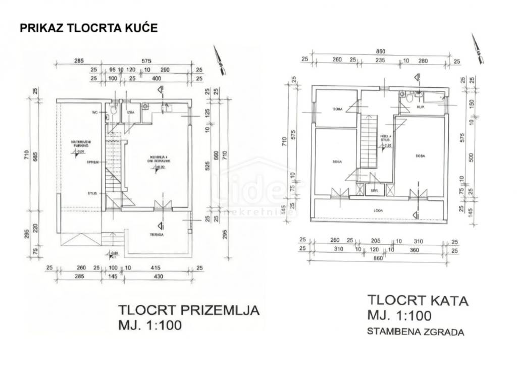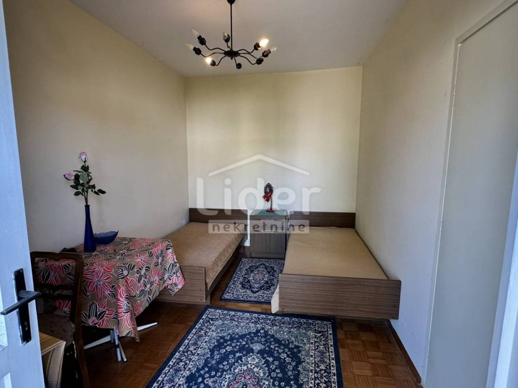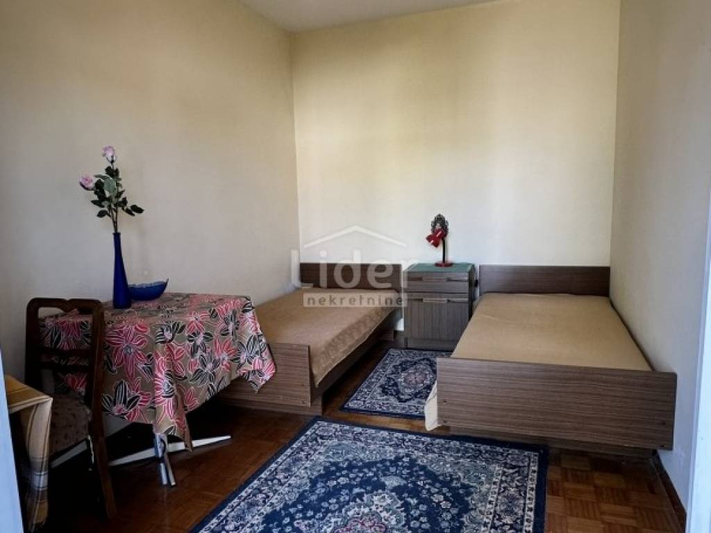 • kat (68,80 m%) - tri spavaće sobe (dvije velike i jedna mala), kupaona s WC-om, spremiste, hodnik sa stubištem, velika loggia duž dvije velike spavaće sobe