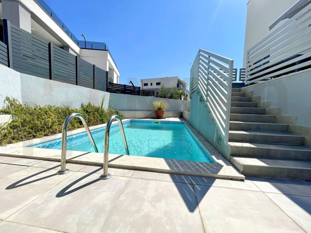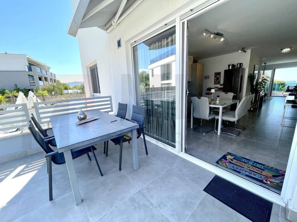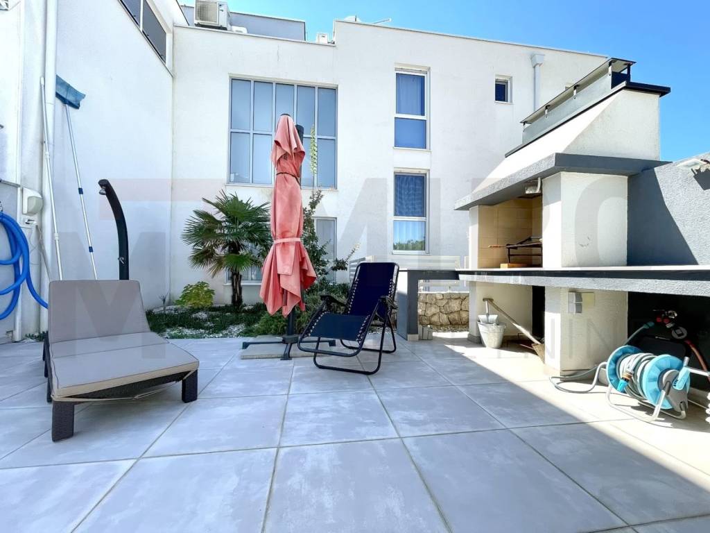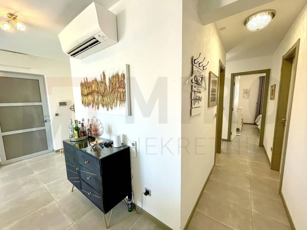 Otok Krk, grad Krk na atraktivnoj lokaciji na prodaju je moderan apartman ukupne površine 107 m2, smješten na prvom katu urbane apartmanske ville sa pogledom na more. Sastoji se od hodnika, tri spavaće sobe, dvije kupaonice i prostora koji objedinjuje dnevni boravak, kuhinju i blagovaonicu sa izlazom na natkrivenu terasu i stražnju terasu koja ima izlaz na okućnicu od 82 m2 sa bazenom i zidanim roštiljem. Apartmanu pripada i spremište od 12 m2 u zajedničkim prostorijama zgrade te dva parkirna mjesta. Kvalitetna gradnja i oprema, lift, podno grijanje na toplinsku pumpu, ALU stolarija, klimatizirani sustav grijanja/hlađenja, moderan namještaj i oprema samo su neka od obilježja ovog modernog apartmana. Nalazi se na odličnoj lokaciji u blizini mora, lijepih plaža i centra sa svim sadržajima. Apartman je u vlasništvu fizičke osobe i na ime njegovog prijenosa kupac je u obvezi plaćanja poreza na promet nekretnine u visini 3%. Posjetite nas i pronađite kvadrat vašeg doma!