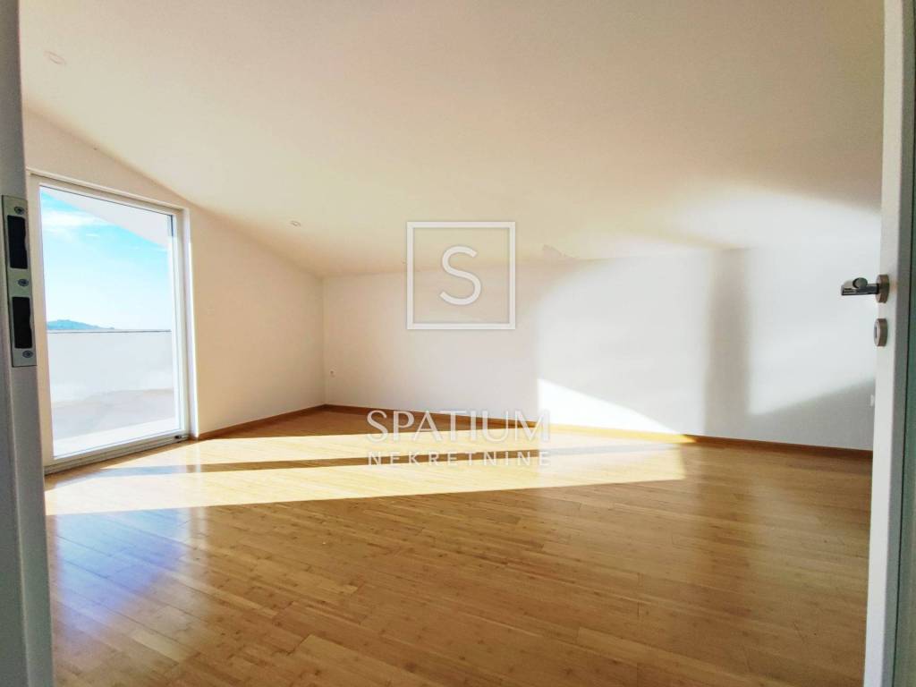 Dodatne karakteristike nekretnine uključuju podno grijanje, sustav klimatizacije (split sustav), intercom i videonadzor, alarmni sustav, sigurnosni sustav, vanjski tuš te četiri vanjska parkirna mjesta. Stan je djelomično namješten, a podovi su izrađeni od kvalitetnog tvrdog drveta. Eksterijer je lijepo uređen i obuhvaća vrt s bujnim zelenilom i automatskim sustavom za navodnjavanje, koji osigurava jednostavno održavanje bilja i travnjaka.