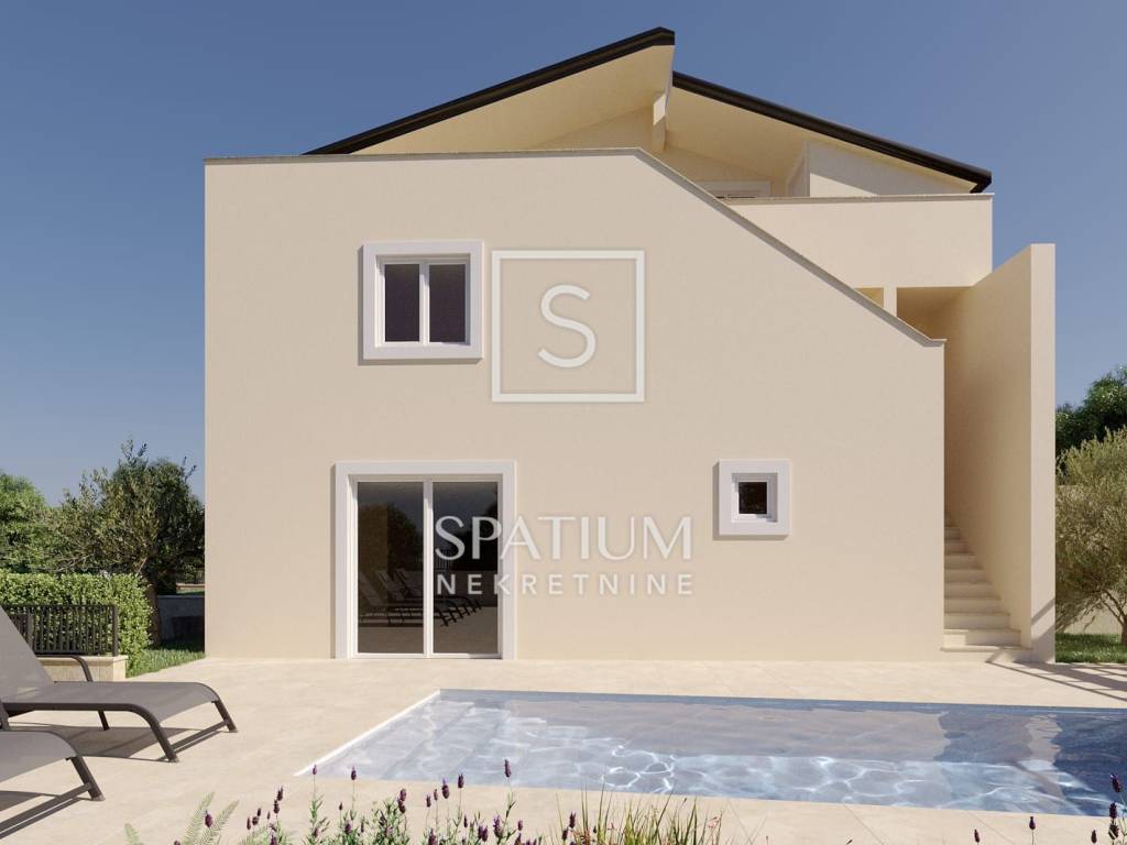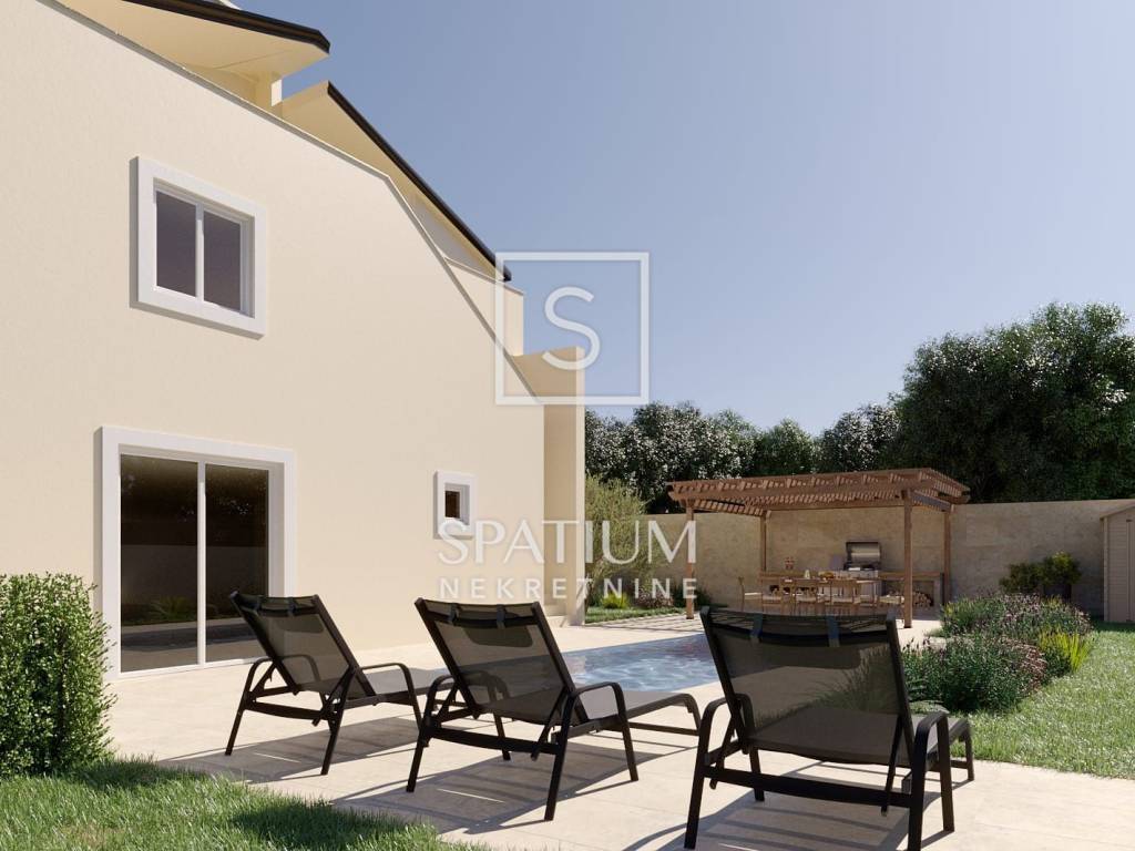 Zasebnim ulazom i privatnim dvorištem koje uključuje bazen, ljetnu kuhinju s blagovaonicom na otvorenom te roštilj, ovaj stan pruža potpuni mir i privatnost budućim stanarima. Smješten na rubu naselja, omogućuje uživanje u mirnom i opuštajućem okruženju.